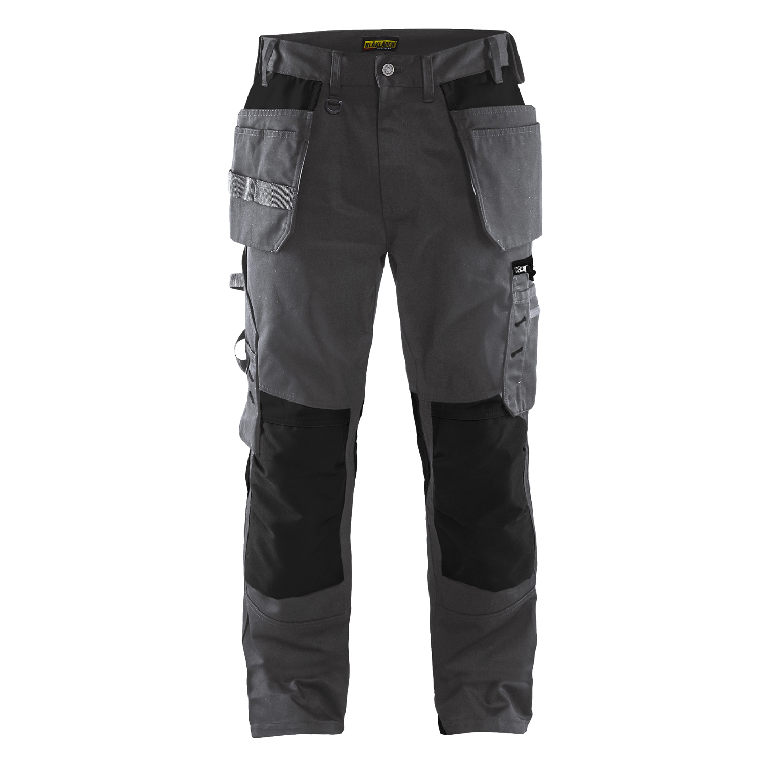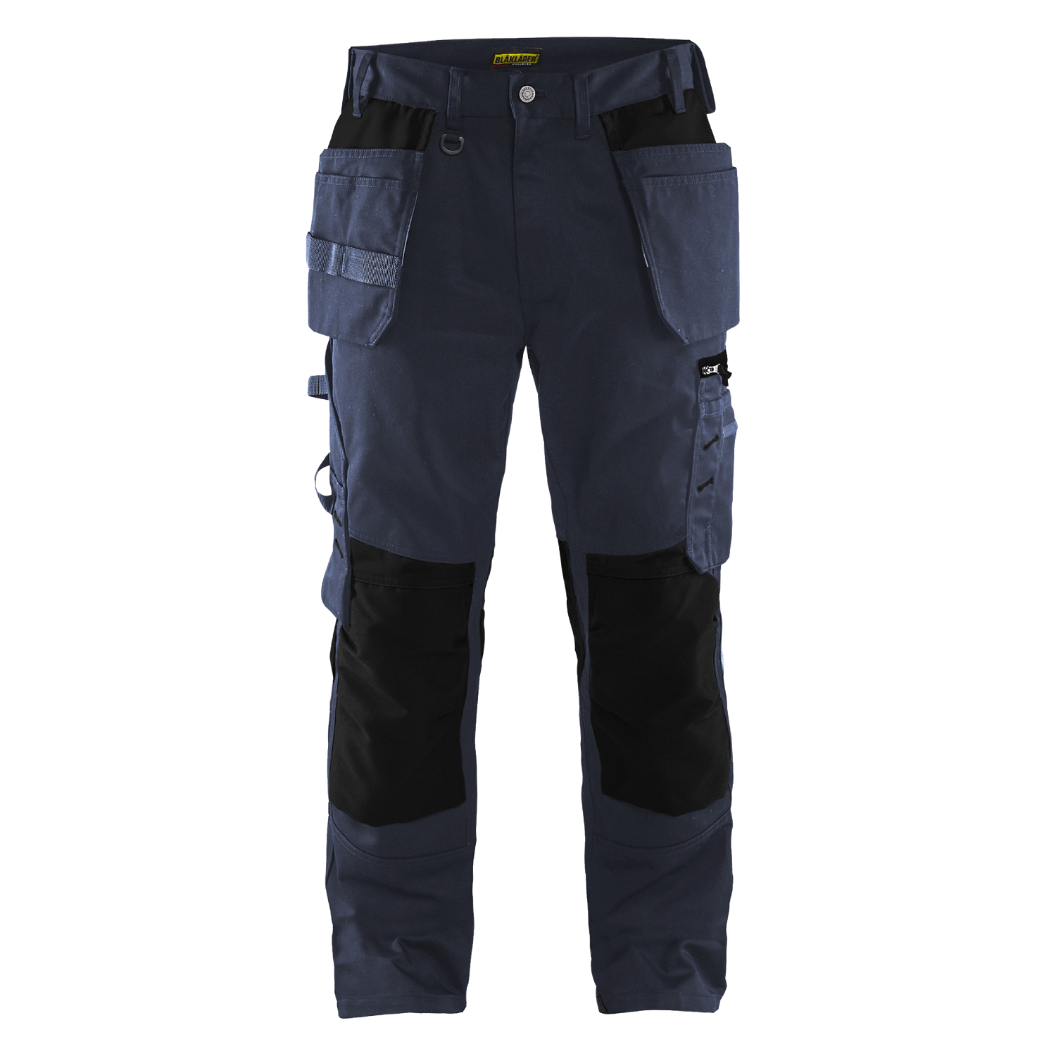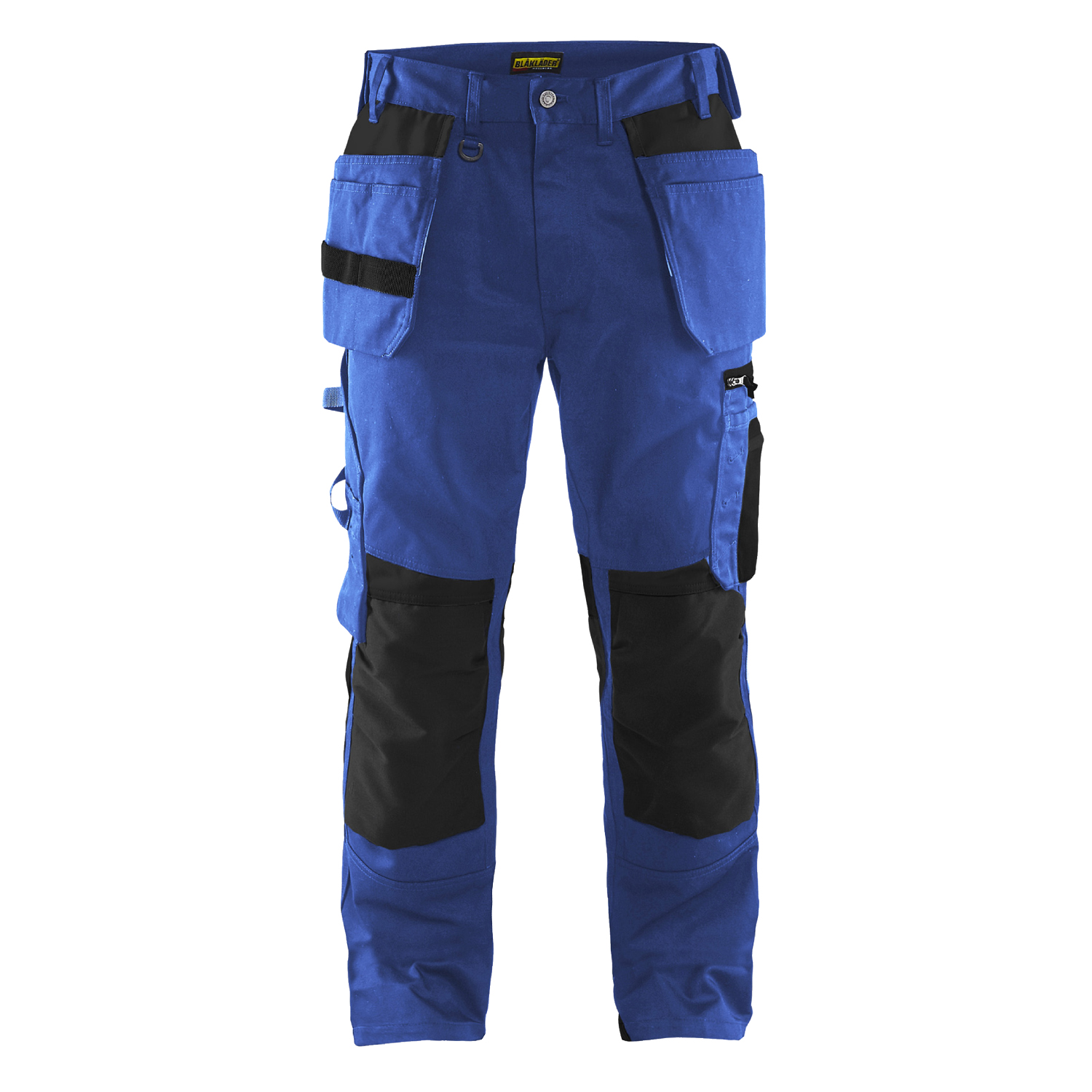 Hantverksbyxa från Blåkläder som är funktionell och bekväm. Byzan har förböjda ben som ger bra passform, spickfickor och lättåtkomliga fickor såsom telefonficka i stretchmaterial som passar de flesta mobiler. Knäskyddsficka i stretch CORDURA® för maximal passform och slitstyrka. Två bakfickor med bälg och hälla för hammarhållare samt förstärkt tumstocksficka, pennficka och knivhållare.