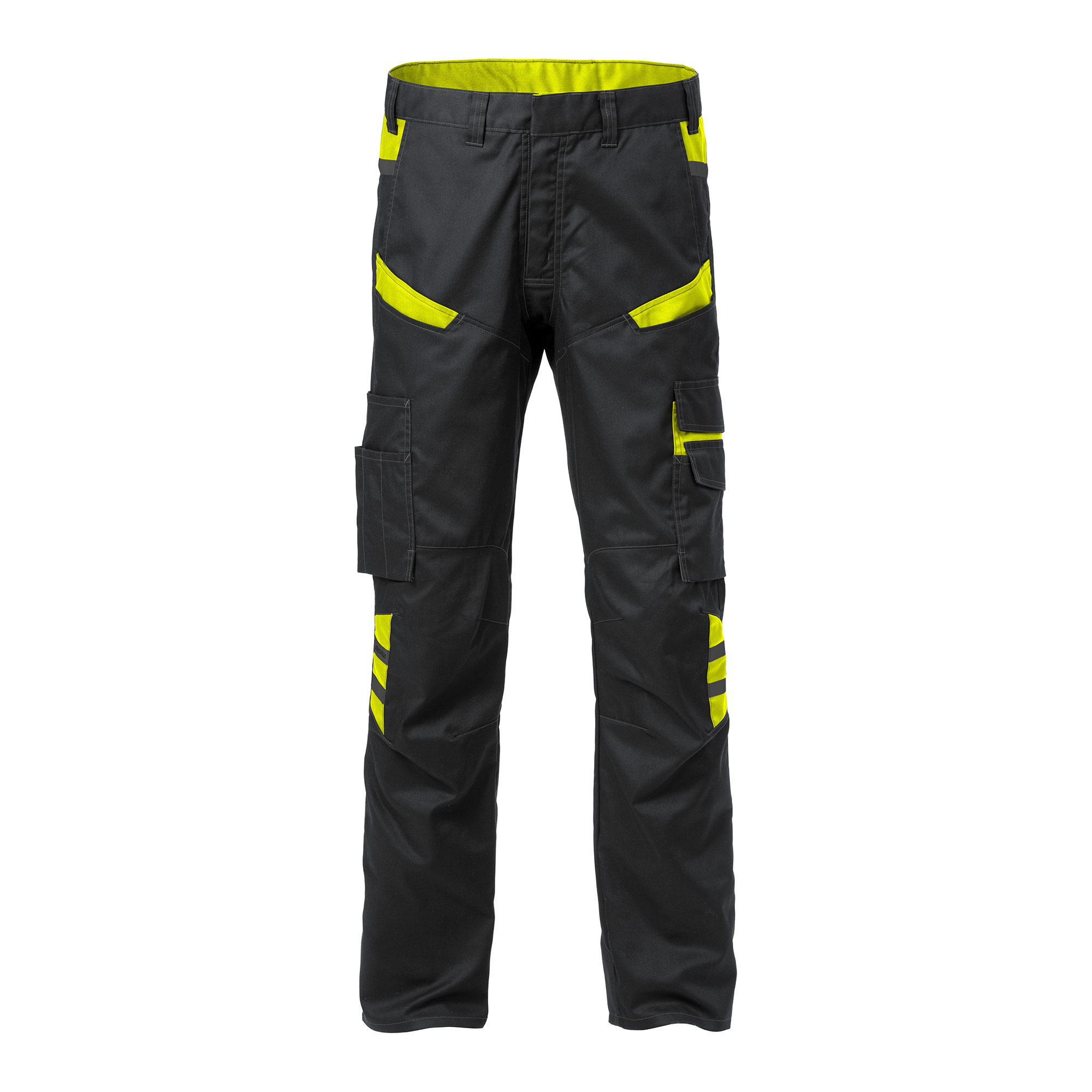 Byxa med modern passform som passar för arbetare inom service- och industrisektorn. Tillverkad av ett lätt och tåligt material med mekanisk stretch som ger bekväm rörelsefrihet. Diskreta mörkgrå reflexdetaljer för ökad synlighet. Godkänd för industritvätt.
