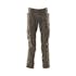 Enfärgade. Lätt kvalitet. Tvånålsstickningar på benen och i grenen. Låg midja och formskuren linning. Byxbenen är ergonomiskt formade. Bältesstroppar. Gylf med blixtlås. Fickor på framstycket. Bakfickor. Benficka med telefonficka och lock med dold tryckknapp och inbyggd ID-korthållare. ID-kortshållaren är avtagbar. Tumstocksfickan är CORDURA®-förstärkt. Med tryck och reflexer.
