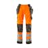 Fluorescerande och med reflexer. Tvåfärgat. Teflon® gör produkten smutsavvisande. Trenålsstickningar på benen och i grenen. Låg midja och formskuren linning. Byxbenen är ergonomiskt formade. Hängfickor i CORDURA® som är justerbara och har extra fickor till verktyg. Bältesstroppar. Gylf med blixtlås. D-ring. Verktygsstropp i linningen. Fickor på framstycket. Bakfickor med förstärkningar, lock och dolda tryckknappar. Hammarstroppen är justerbar. Benficka med förstärkningar och extra fickor – en invändig telefonficka samt en utvändig telefonficka med lock och magnetknäppning. Tumstocksficka med CORDURA®-förstärkt öppning. Justerbara knäfickor i slitstark CORDURA® (500 D) med ficklock och öppning ovanifrån. Lodräta reflexremsor på yttersidan av benen för extra synlighet. Innerbenslängden kan ökas med 3 cm genom att ta bort den invändiga röda sömmen vid foten. Vi rekommenderar 00718-100, 00418-100, 50454-916 & 20118-915 knäskydd till den här modellen. Samcertifierade med knäskyddstyp SHORT eller LONG enligt EN 14404.