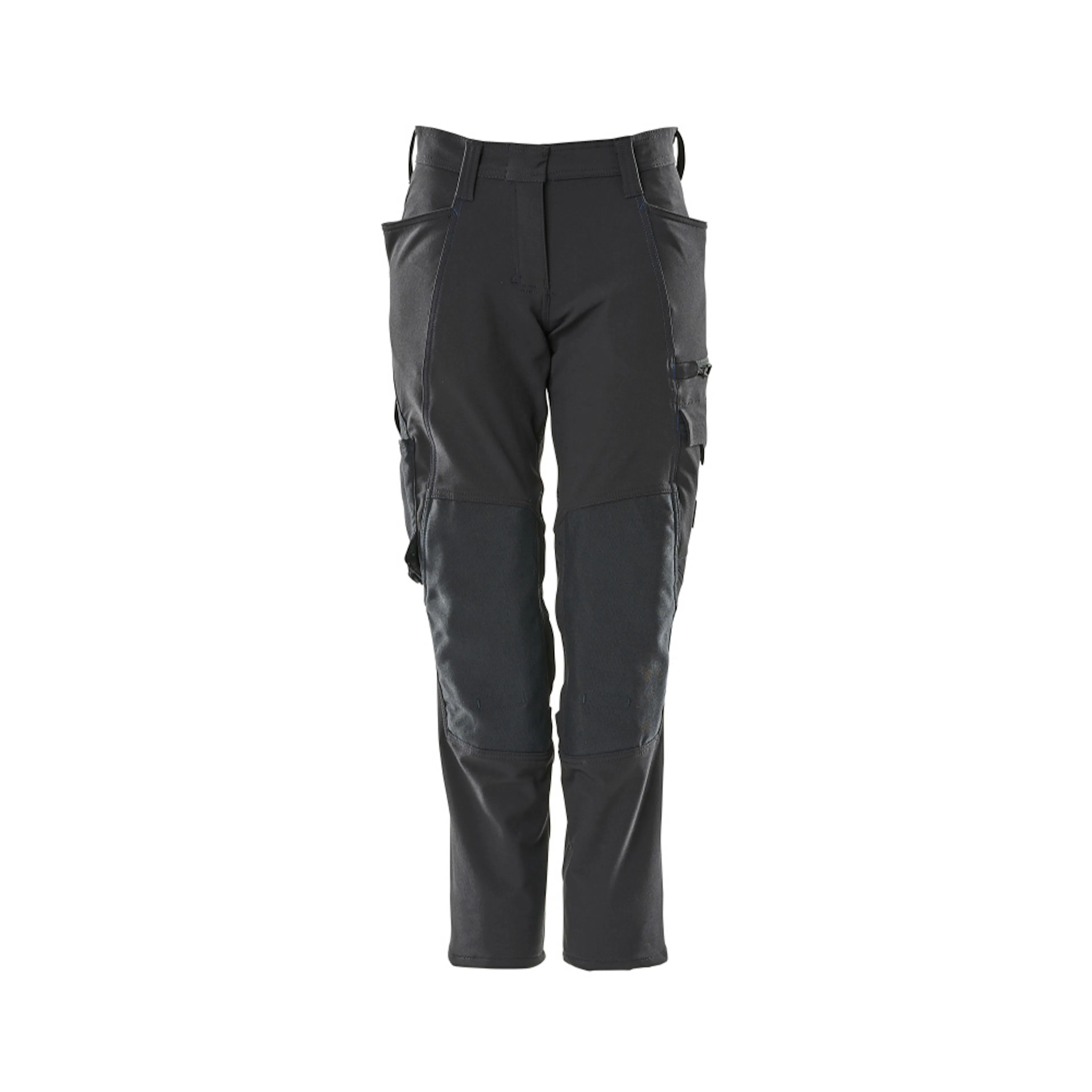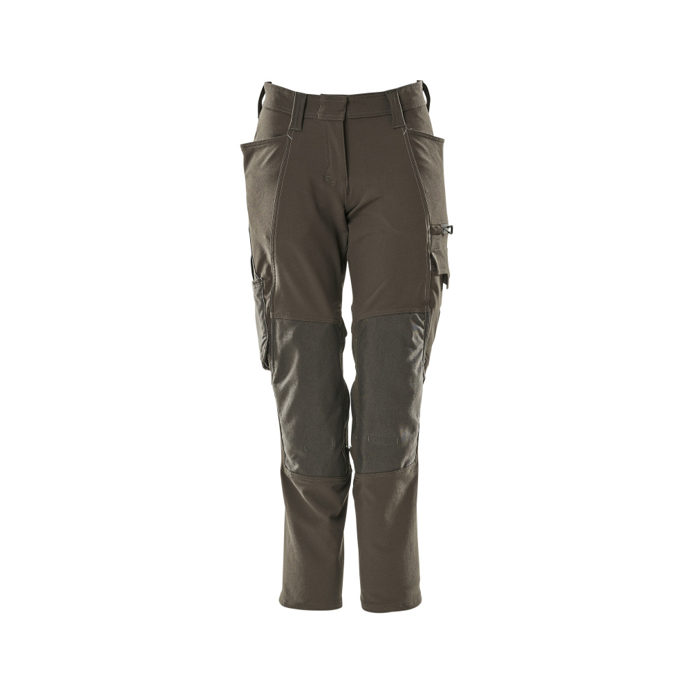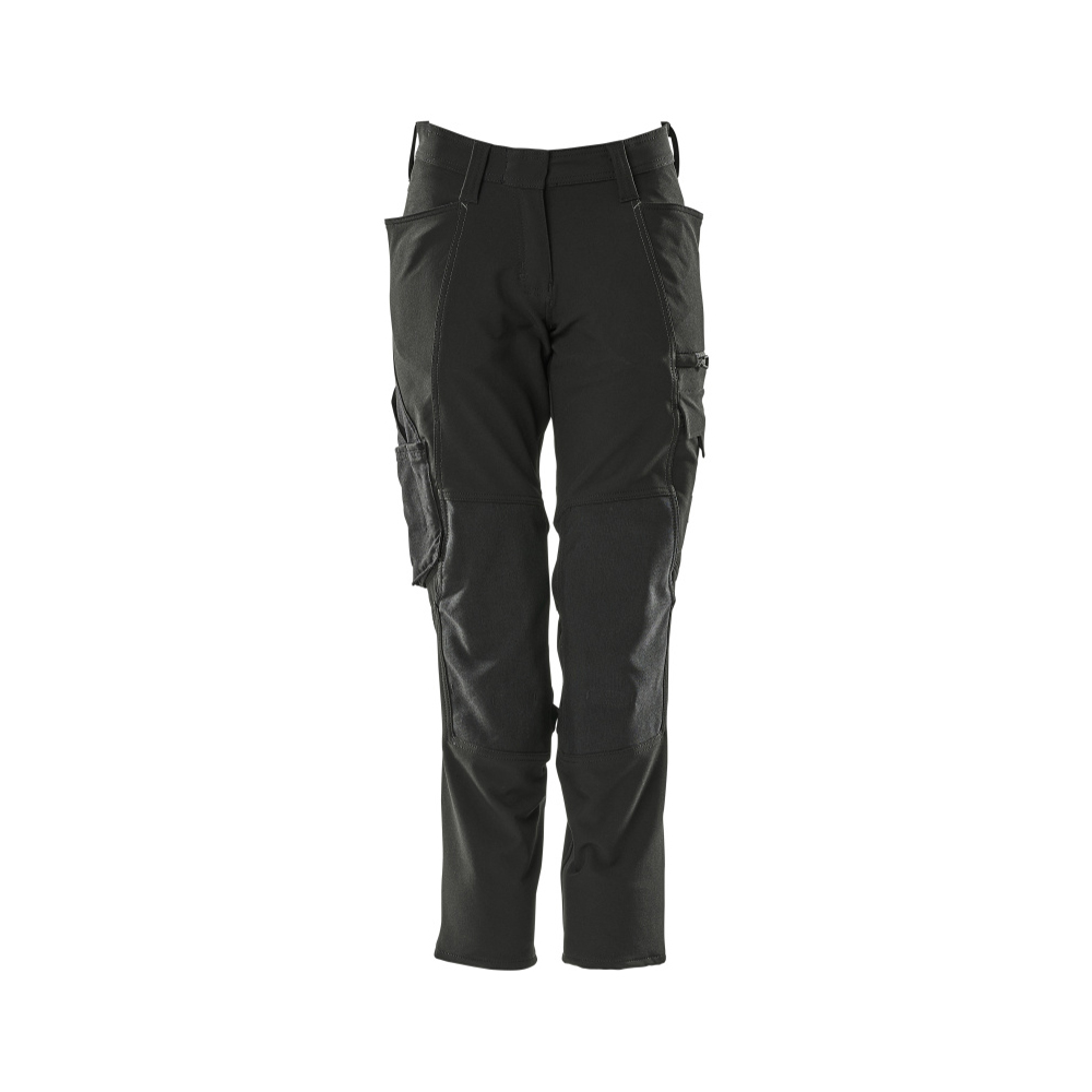 Passformen Diamond är särskilt designad för kvinnor med en skillnad på mer än 20 centimeter mellan midje- och höftmåttet. Stretchtyget är elastiskt åt alla håll, vilket ger en unik rörelsefrihet, där inget stramar eller irriterar. Det multifunktionella stretchtyget kombinerar låg vikt med mycket hög slitstyrka, samtidigt som det är vattenavvisande. Effektiv ventilation vid knäområdet via blixtlås på sidan av benet. Tyget tål industritvätt. Knäfickorna i slitstarkt CORDURA® är reglerbara, så att knäskydden får den optimala placeringen. Samcertifierade för användning med MASCOT:s knäskyddstyp SHORT eller LONG, eftersom knäskyddsfickan kan höjdjusteras.