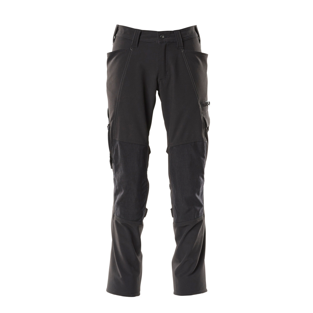 Stretchtyget är elastiskt åt alla håll, vilket ger en unik rörelsefrihet, där inget stramar eller irriterar. Det multifunktionella stretchtyget kombinerar låg vikt med mycket hög slitstyrka, samtidigt som det är vattenavvisande. Tyget tål industritvätt. Den låga skärningen med formskuren linning ser till att byxorna följer och stöder alla kroppens rörelser. Effektiv ventilation vid knäområdet via blixtlås på sidan av benet. Knäfickorna i slitstarkt CORDURA® är reglerbara, så att knäskydden får den optimala placeringen. Som standard i tre olika benlängder så kan du välja den bästa passformen och den optimala placeringen av detaljer just för dig. Samcertifierade för användning med MASCOT:s knäskyddstyp SHORT eller LONG, eftersom knäskyddsfickan kan höjdjusteras.