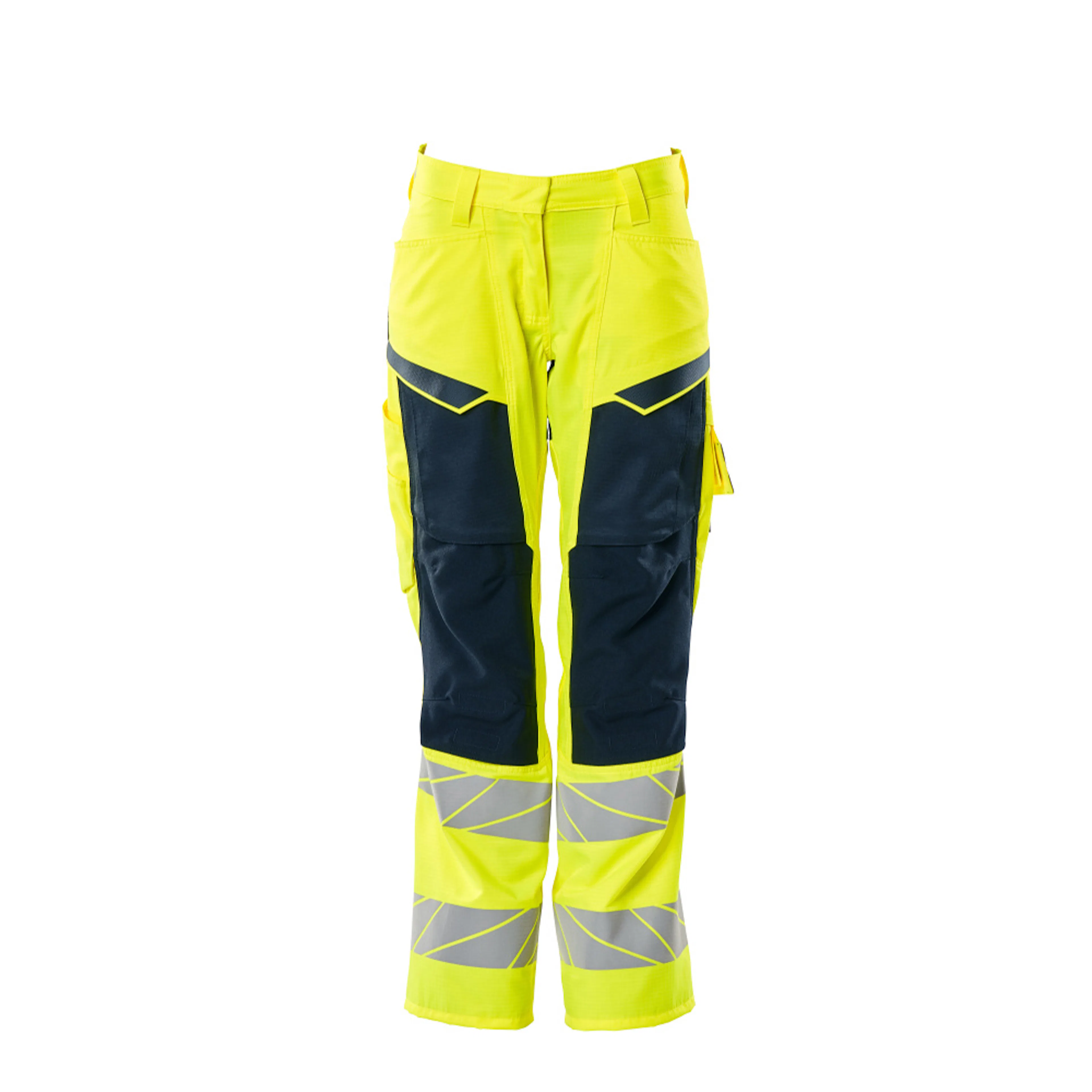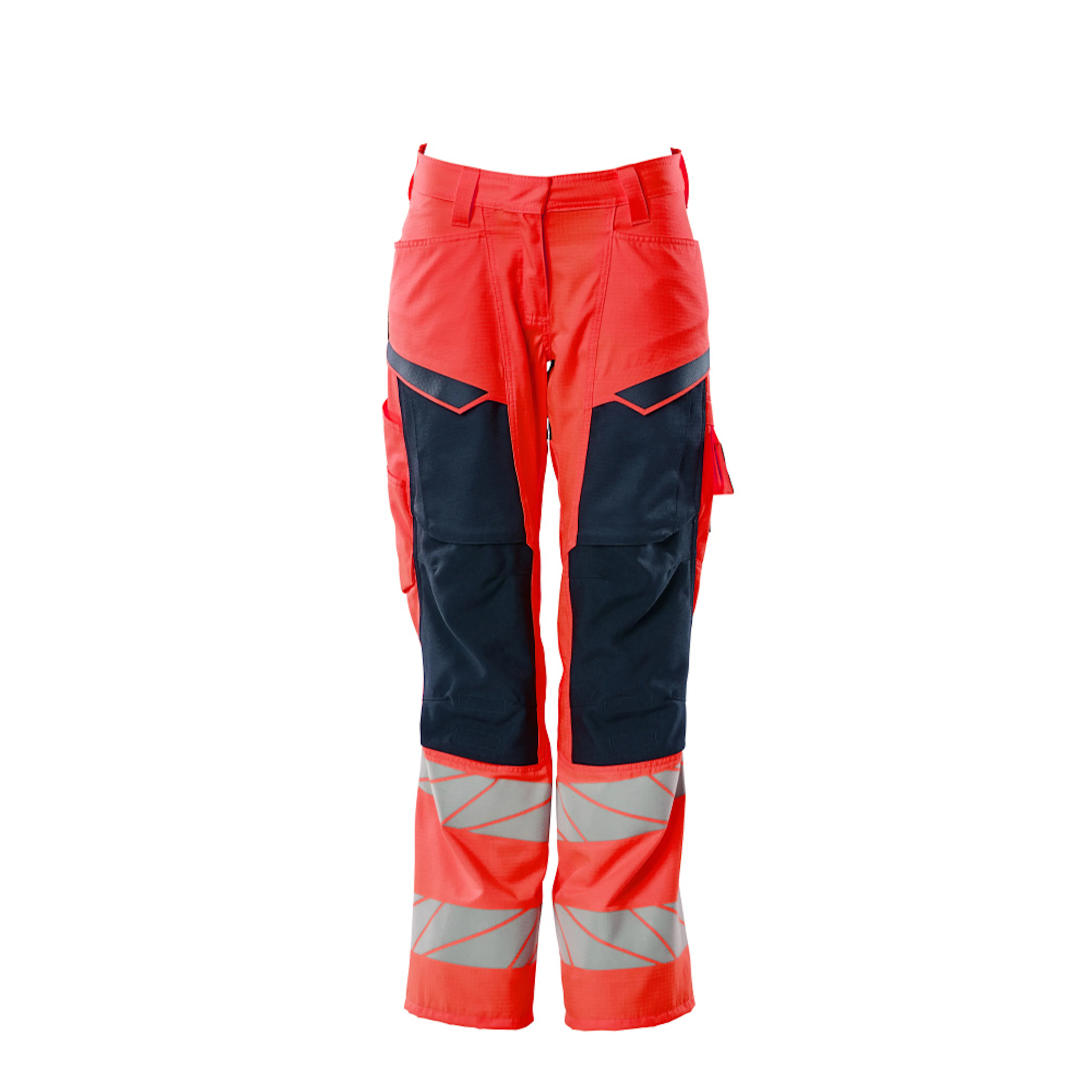 Lady passform DIAMOND. Fluorescerande och med reflexer. Tvåfärgat. Delar av produkten är av stretchtyg. Kombination av lättviktigt tyg kvalitet 236 och ULTIMATE STRETCH kvalitet 511. Tvånålsstickningar på benen och i grenen. Låg midja. Knäppningen är dold. Stängning med blixtlås. Byxbenen är ergonomiskt formade. Bältesstroppar. D-ring. Fickor på framstycket. Bakfickor med förstärkningar. Hammarstroppen är justerbar. Tumstocksfickan är förstärkt. Fickor med lock på framsidan av låret. Justerbara knäfickor i slitstark CORDURA® (500 D). Enkel individuell justering av knäficka höjd. Benficka med telefonficka och lock med dolda tryckknappar. Med tryckeffekter. Förberedd för hängfickor 19450-126 som sätts fast med knappar. Innerbenslängden kan ökas med 3 cm genom att ta bort den invändiga röda sömmen vid foten. Vi rekommenderar 00718-100, 00418-100, 50454-916 & 20118-915 knäskydd till den här modellen. Samcertifierade med knäskyddstyp SHORT eller LONG enligt EN 14404.