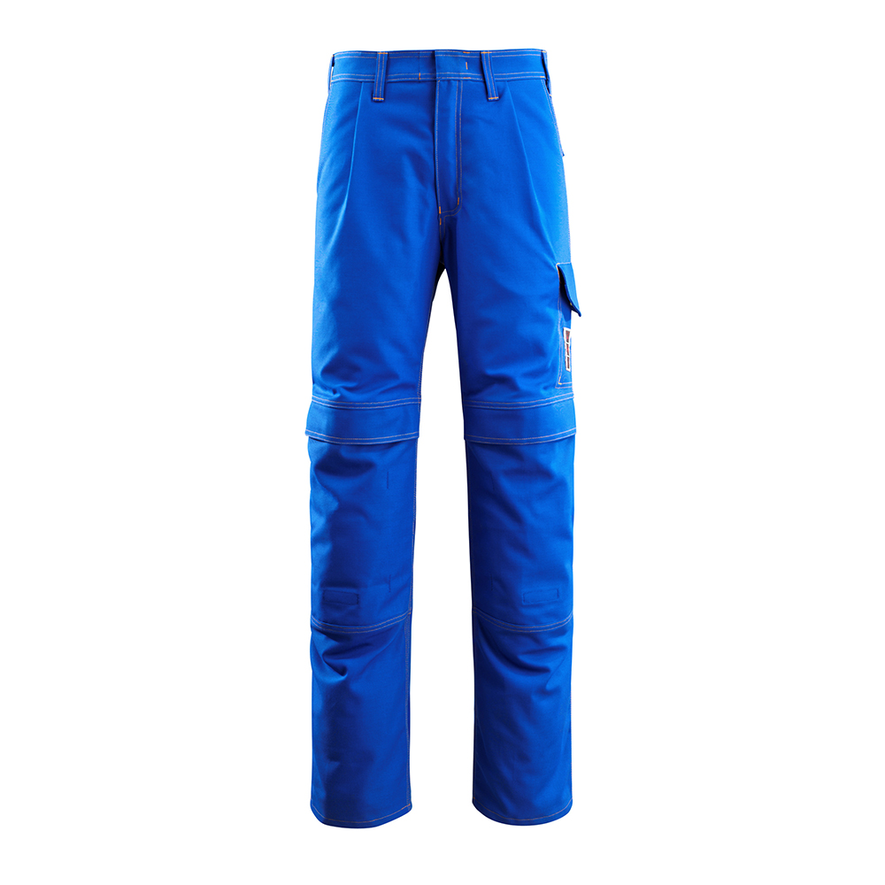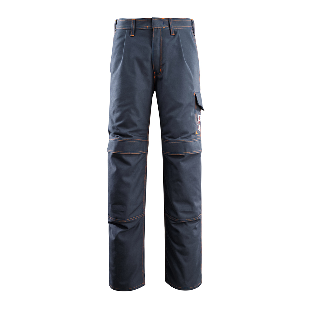 Antistatisk, syraskyddande och flamsäker PyroPro®. Slitstarka trenålssömmar på ben och i skrev förlänger produktens livslängd. Knäfickorna kan justeras så att knäskydden är placerade optimalt i förhållande till dina knän. Sömmarna är vända nedåt så att gnistor inte kan fastna. Tumstocksficka med förstärkt öppning. Samcertifierade för användning med MASCOT:s knäskyddstyp SHORT eller LONG, eftersom knäskyddsfickan kan höjdjusteras.