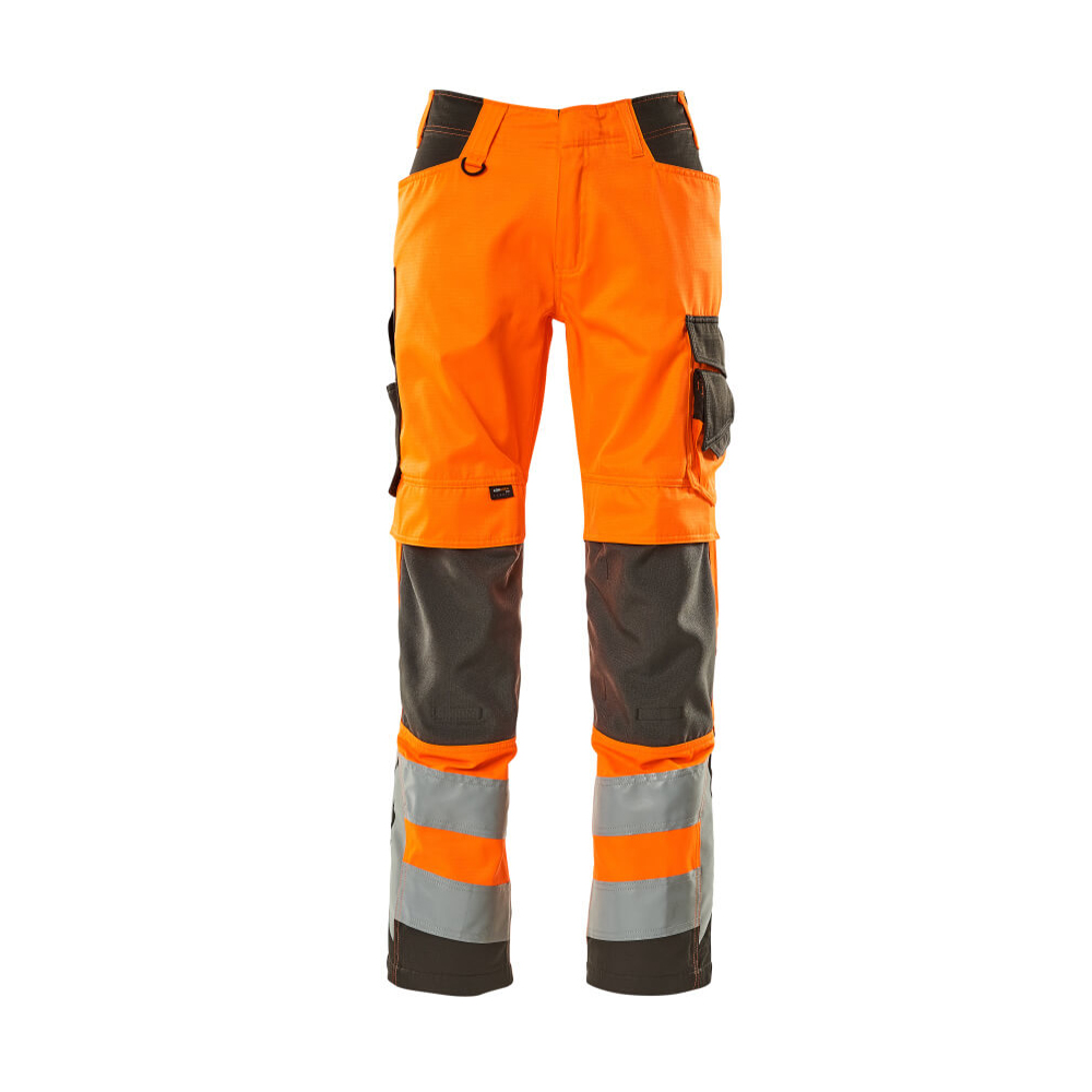 Fluorescerande och med reflexer. Tvåfärgat. Har en vattenavvisande yta. Trenålsstickningar på benen och i grenen. Låg midja och formskuren linning. Byxbenen är ergonomiskt formade. Bältesstroppar. Gylf med blixtlås. D-ring. Fickor på framstycket. Bakfickor med förstärkningar, lock och dolda tryckknappar. Hammarstroppen är justerbar. Benficka med förstärkningar och extra fickor – en invändig telefonficka samt en utvändig telefonficka med lock och magnetknäppning. Tumstocksficka med CORDURA®-förstärkt öppning. Justerbara knäfickor i slitstark CORDURA® (500 D) med ficklock och öppning ovanifrån. Lodräta reflexremsor på yttersidan av benen för extra synlighet. Innerbenslängden kan ökas med 3 cm genom att ta bort den invändiga röda sömmen vid foten. Vi rekommenderar 00718-100, 00418-100, 50454-916 & 20118-915 knäskydd till den här modellen. Samcertifierade med knäskyddstyp SHORT eller LONG enligt EN 14404.