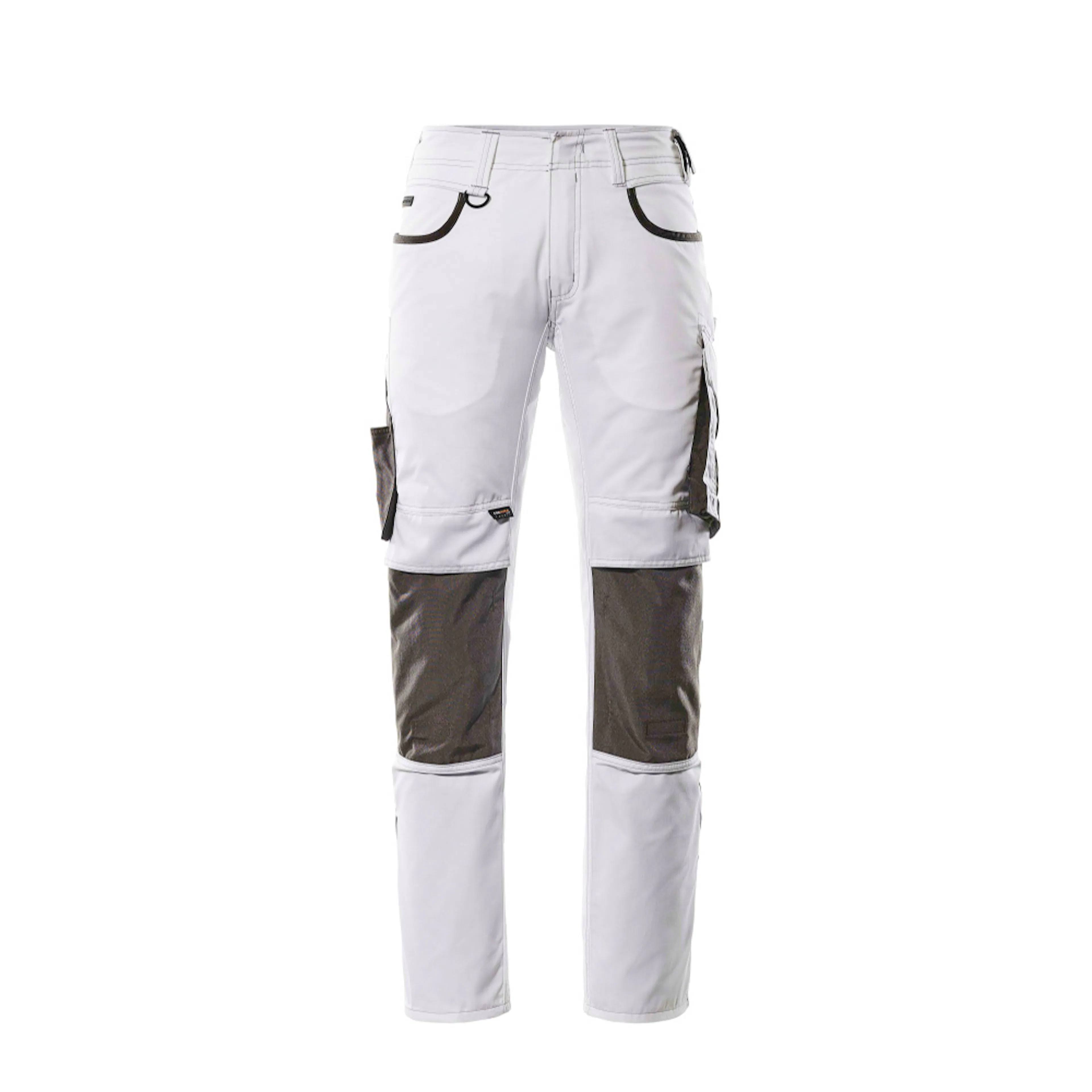 Slitstarka trenålssömmar på ben och i skrev förlänger produktens livslängd. Den låga skärningen med formskuren linning ser till att byxorna följer och stöder alla kroppens rörelser. Utmärkt passform med formskurna ben och kilar på insidan av ben och skrev (med extra förstärkning). Av slitstark CORDURA® – med öppning för knäskydd från ovansidan och med lucka så att inte smuts samlas. Extra synlig för omgivningarna med hjälp av reflexeffekter. Samcertifierade för användning med MASCOT:s knäskyddstyp SHORT eller LONG, eftersom knäskyddsfickan kan höjdjusteras.