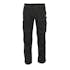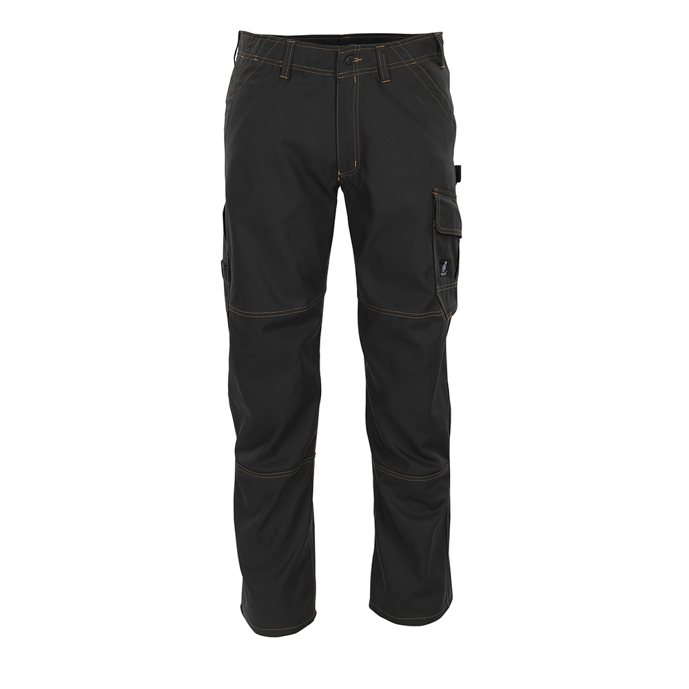 Tvånålsstickningar och trenålsstickningar på benen och i grenen. Låg midja och formskuren linning. Byxbenen är ergonomiskt formade. Bältesstroppar. Gylf med blixtlås. Fickor på framstycket. Bakfickor med förstärkningar och lock med kardborreband. Hammarstroppen är justerbar. Benficka med förstärkningar, telefonficka och lock med kardborreband. Tumstocksfickan är förstärkt och har en liten ficka utanpå. Pennficka. Kontrastsömmarna är orange. Reflexeffekter.