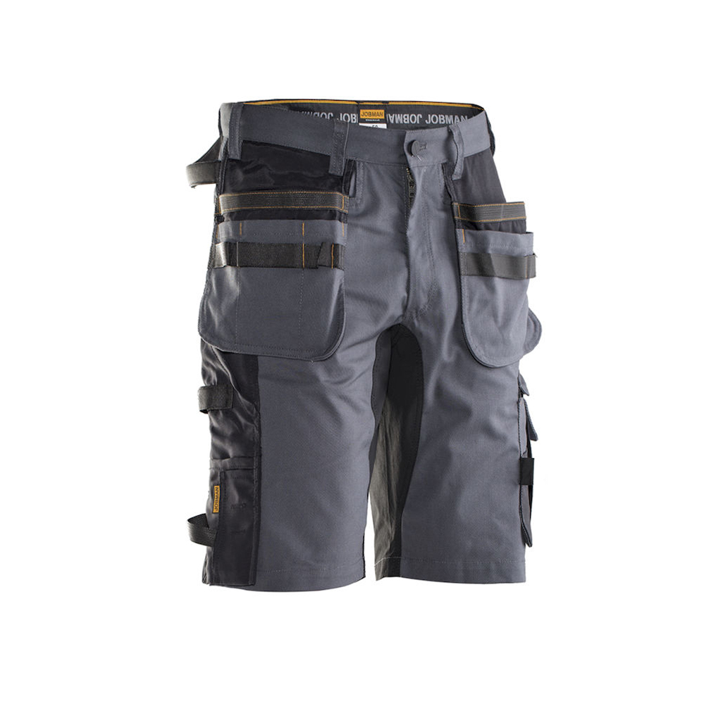 Smidiga hantverksshorts i hållbar kavalleri twill med paneler i form av grenkil i stretch Cordura som ger extra rörlighet. Rymliga hölsterfickor med extrafack och förstärkt insida som kan stoppas ned i framfickorna. Extra hällor för bältet på de största storlekarna. Hammarhank. Tumstocksficka med knivhållare. Snedställd benficka med blixtlås, telefonfack, ID-kortsfack och extra fack.