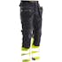 Hantverksbyxa i klass 1 med stretchpaneler i form av grenkil i stretch Cordura som ger extra rörlighet. Knäskyddsfickor med sidpaneler i stretch Cordura. Core är ringspunnen bomull/polyester, en kvalitet med styrka från polyester och komfort från bomull. Förböjda knän i slitstark FA™ med två höjdnivåer. Rymliga hölsterfickor med extrafack och förstärkt insida som kan stoppas ned i framfickorna. Extra hällor för bältet på de största storlekarna. Hammarhank. Tumstocksficka med knivhållare. Snedställd benficka med blixtlås, telefonfack, ID-kortsfack och extra fack. Mesh i knävecken för ventilation. Förstärkt benslut bak i polyamid som inte absorberar fukt och dragsko i benslutet.