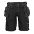 Tvånålsstickningar och trenålsstickningar på benen och i grenen. Låg midja och formskuren linning. Bältesstroppar. D-ring. Verktygsstropp på båda sidor av linningen. Gylf med blixtlås. Förstärkta hängfickor i CORDURA®, extra fickor och verktygsstroppar. Magneter i hängficka för fastsättning av spikar, skruvar och bits. Öppning till hängfickor. Fickor på framstycket. Bakfickor med förstärkningar, lock och kardborreband. Hammarstroppen är justerbar. Benficka med förstärkningar och lock med kardborreband. Telefonbenficka. Tumstocksficka i CORDURA®. Pennficka i CORDURA®. Kontrastsömmar.