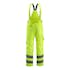 Fluorescerande med sneda tvärgående reflexer. Andas, vind- och vattentät. Sömmarna är tejpade. Quiltfoder. Bältesstroppar. D-ring. Gylf med blixtlås. Fickor på framstycket. Bakfickor med förstärkningar, lock och dolda tryckknappar. Benficka med förstärkningar och extra fickor – en invändig telefonficka samt en utvändig telefonficka med lock och magnetknäppning. Tumstocksficka. Knäfickorna är justerbara och har lock öppning upptill. Snölås invändigt i benen. Blixtlås med vindskydd på yttersidan av benen. Vi rekommenderar 00718-100, 00418-100, 50454-916 & 20118-915 knäskydd till den här modellen. Samcertifierade med knäskyddstyp SHORT eller LONG enligt EN 14404.