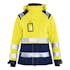 Vind- och vattentät skaljacka i dammodell från Blåkläder med tejpade sömmar och avtagbar, justerbar luva. Jackan har borstat meshfoder för optimal fukttransport och ytatyg i slitstarkt material med mörka färgfält där plagget utsätts för mest smuts. För ökad rörlighet har jackan tvåvägsblixtlås, förböjda ärmar och förlängd rygg. 50 mm breda transferreflexer för förhöjd synlighet samt flera praktiska fickor. Passar perfekt att bära året runt.