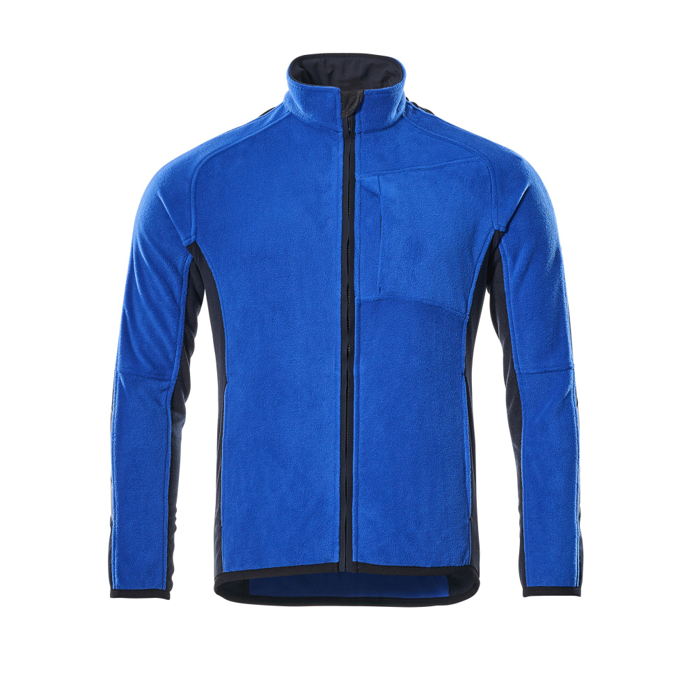 Tvåfärgat. Stängning med blixtlås och invändigt vindfång. Bröstficka med blixtlås. Fickor på framstycket. Innerficka. Ergonomiskt utformade ärmar ger god rörelsefrihet. Ryggen är förlängd. Resår vid handleden och i nederkanten. Reflexeffekter.