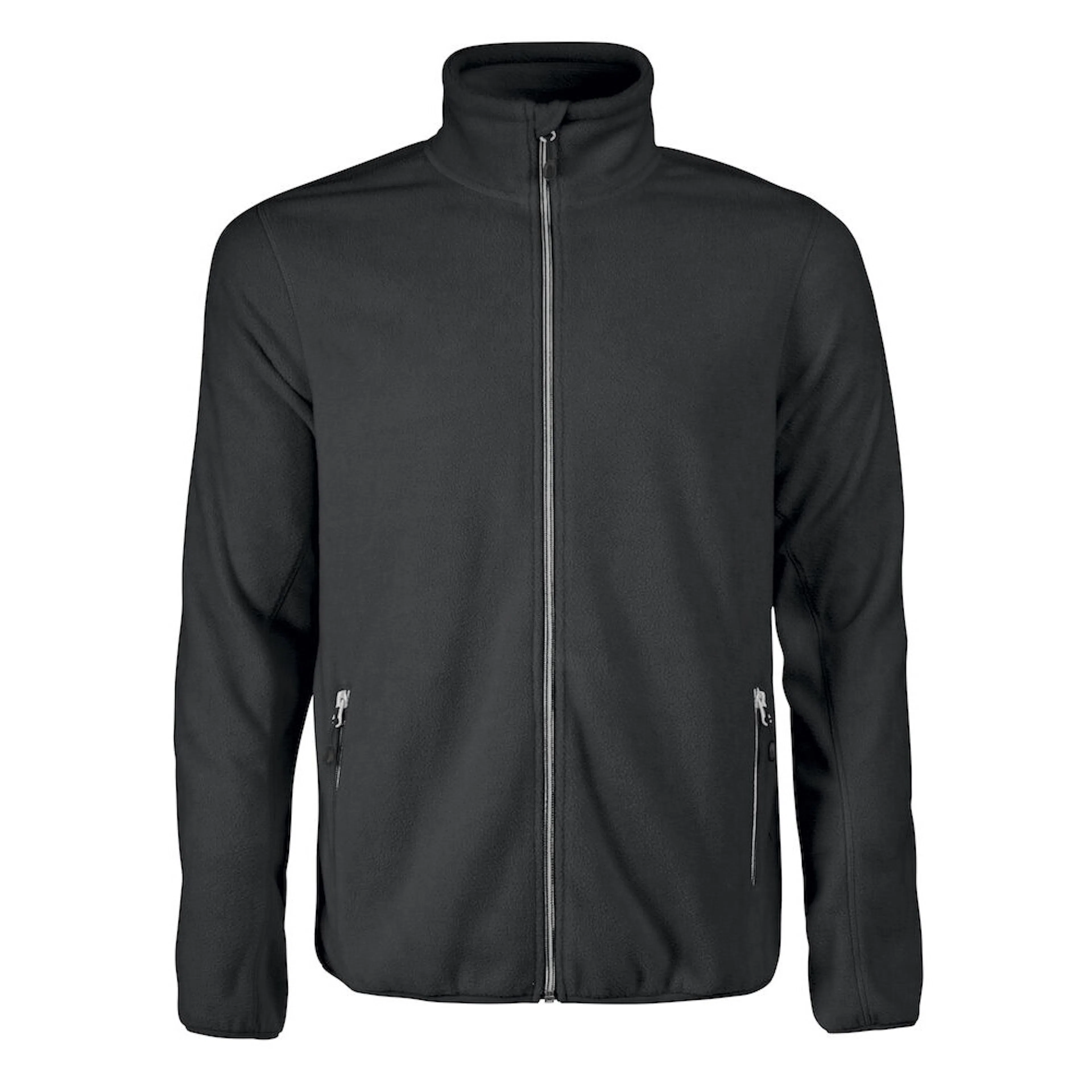 Dubbelsidigt borstad fleecejacka, Framfickor och öppning med kontrasterande dragkedjor, Dekorativ flatlocksöm på ärm och elastisk tape vid ärmavslut och nederkant,