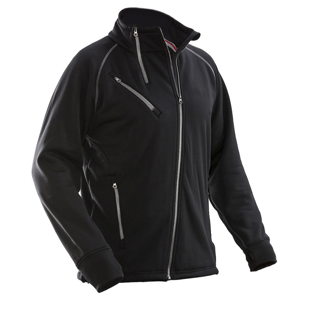 Jacka följsam polyester med fleeceinsida som värmer. Bröstficka med ID-kortsfack. Rymliga framfickor med blixtlås. Reglerbar i midja och tumgrepp i ärmsluten. Kort extra blixtlås i kragen för ventilation.
