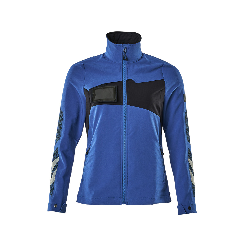 Lady passform. Har en vattenavvisande yta. Ultimate stretchtyg med låg vikt och bra slitstyrka. Stängning med blixtlås och invändigt vindfång. Bröstficka med blixtlås. ID-kortshållaren är avtagbar. Framfickor med blixtlås. Tryckknappsjustering vid handleden och i nederkanten. Med tryck och reflexer.