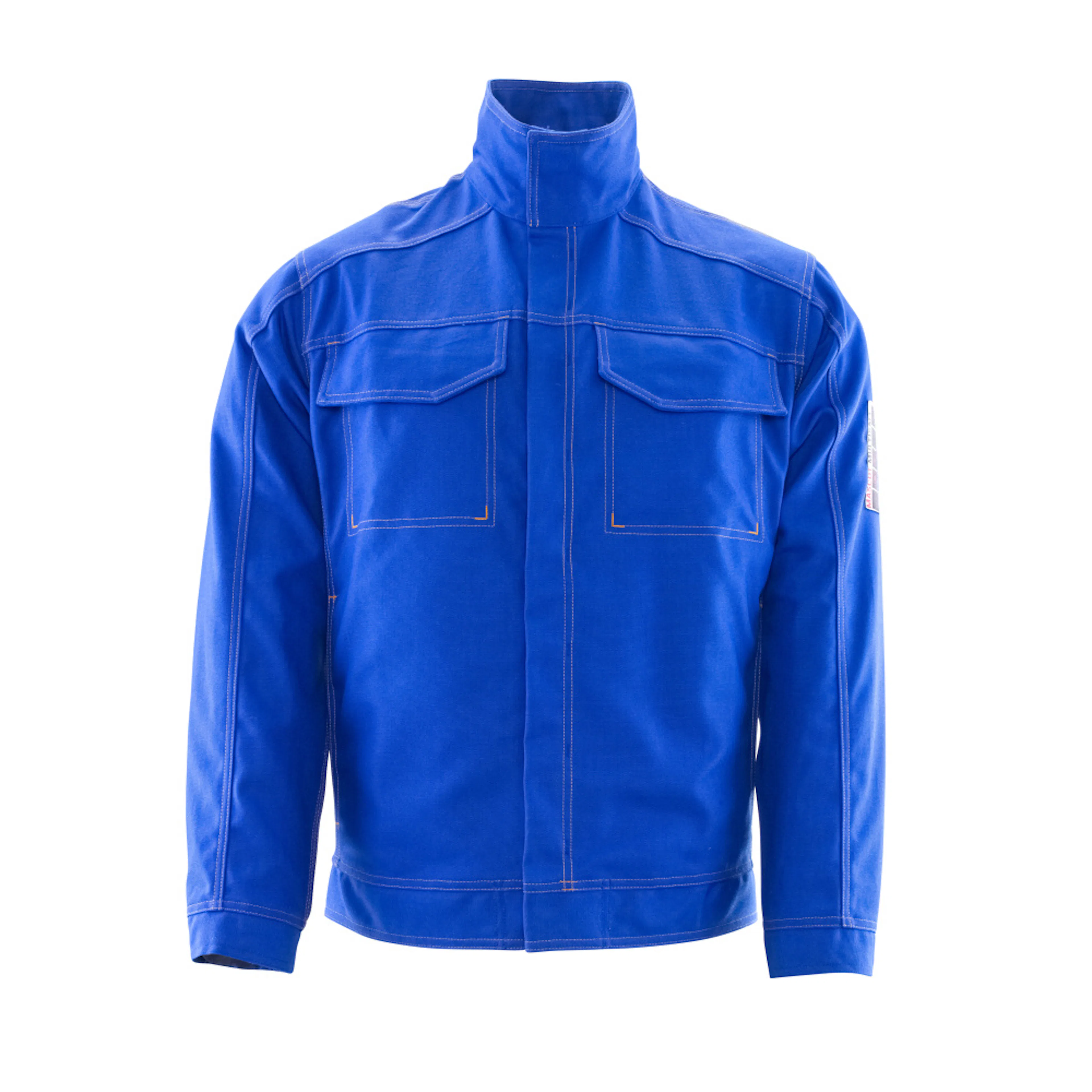 Antistatisk, syraskyddande och flamsäker PyroPro®. Skyddar mot ljusbåge och vid kortvarig svetsning. Teflon® gör produkten smutsavvisande. Hög krage med tryckknappar. Trenålsstickningar på ärmar, axlar och i sidan. Stängning med dolda tryckknappar. Bröstfickor med lock och dolda tryckknappar. Framfickor med dolt blixtlås. Innerficka med lock. Manschetter med resår. Sömmarna är vända nedåt, så gnistor inte kan fastna i plagget. Kontrastsömmar.