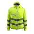 Fluorescerande med sneda tvärgående reflexer. Tvåfärgat. Andas, vindtät och vattenavvisande. Vadderat. Stängning med blixtlås och invändigt vindfång. Huvan kan vikas ihop och stoppas in i kragen. Innerficka med blixtlås som är särskilt utformad för telefoner, med hål till kabel och headset och öglor för att hålla kabeln på plats. Bröstfickor med blixtlås. D-ring. Pennficka. Framfickor med blixtlås.