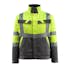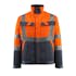Fluorescerande och med lod- och vågräta reflexer. Tvåfärgat. Hög krage. Stängning med blixtlås och vindskydd med tryckknappar. Bröstfickor med lock och tryckknappar. D-ring. Fickor på framstycket. Innerficka. Linning med tryckknappjustering. Manchetter med tryckknappar.