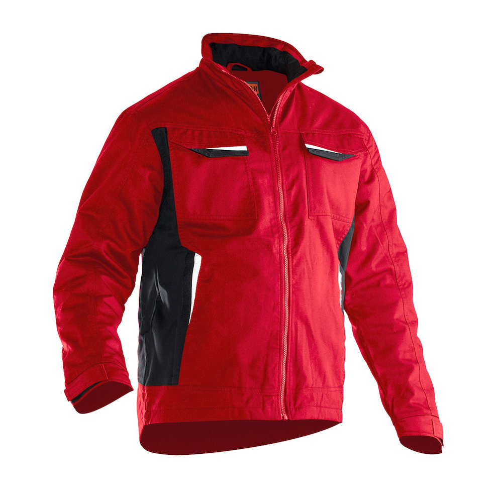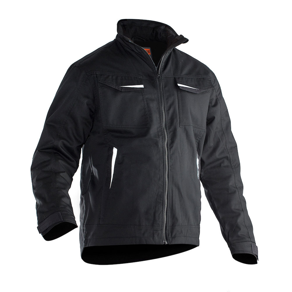 Servicejacka i lättskött polyester/bomull. Två bröstfickor med kardborrestängning, D-ring i vänster bröstficka för ID-kort. Borstad mjuk polyester i kragen. Framfickor med blixtlås. Tre innerfickor; två öppna och en för mobiltelefonen. Reglerbart ärmslut. Reflexer framtill på ficklock. Förlängd i rygg med reflexpasspoal.