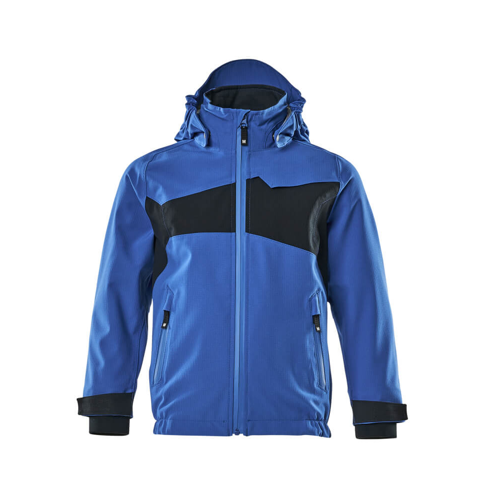 Vindtät och vattenavvisande. Löstagbar huva med foder. Knäppning med blixtlås och invändig vindflik så att vinden stängs ute. Ribbstickning vid handlederna sluter åt bra och håller ute kylan. Extra synlig för omgivningarna med hjälp av reflexeffekter.