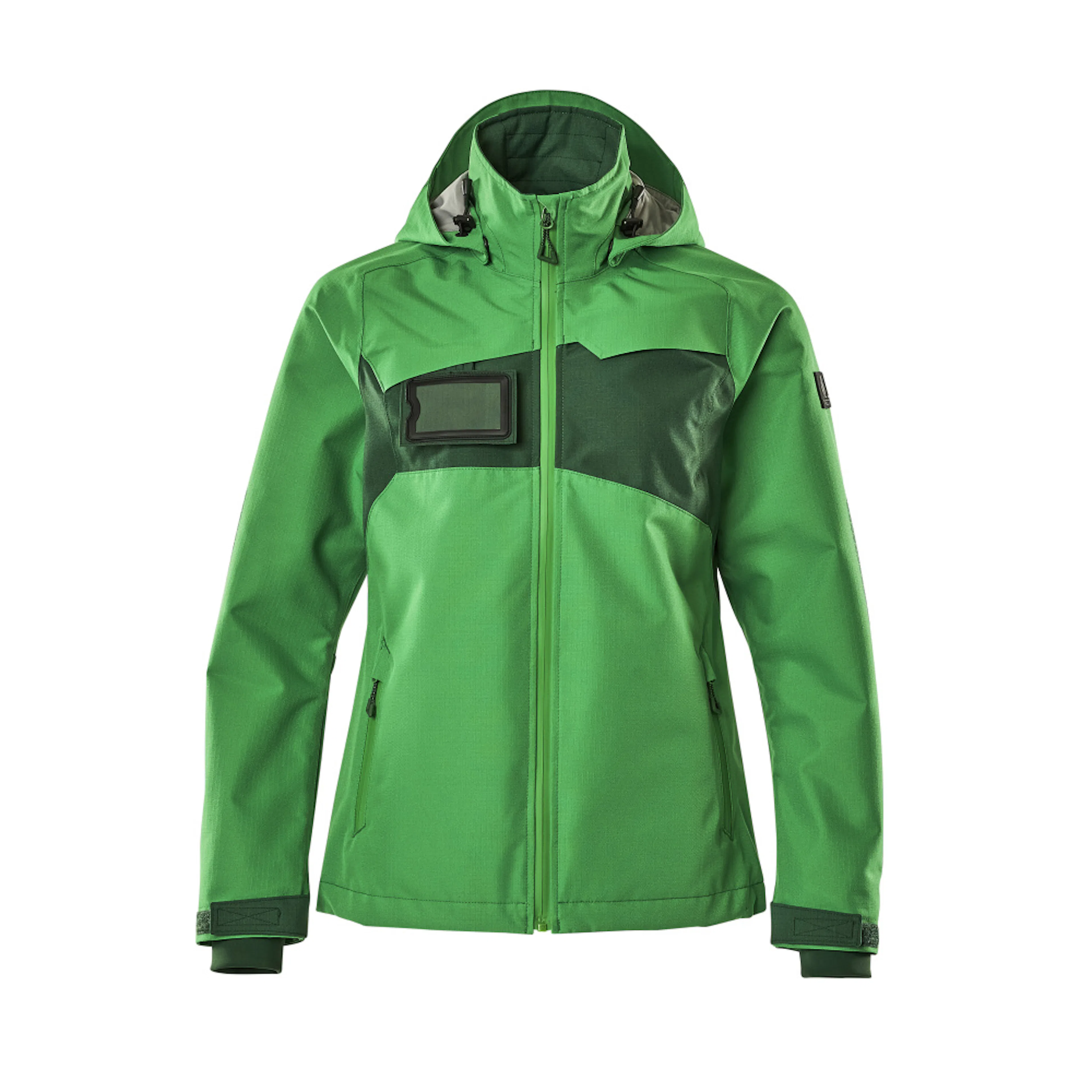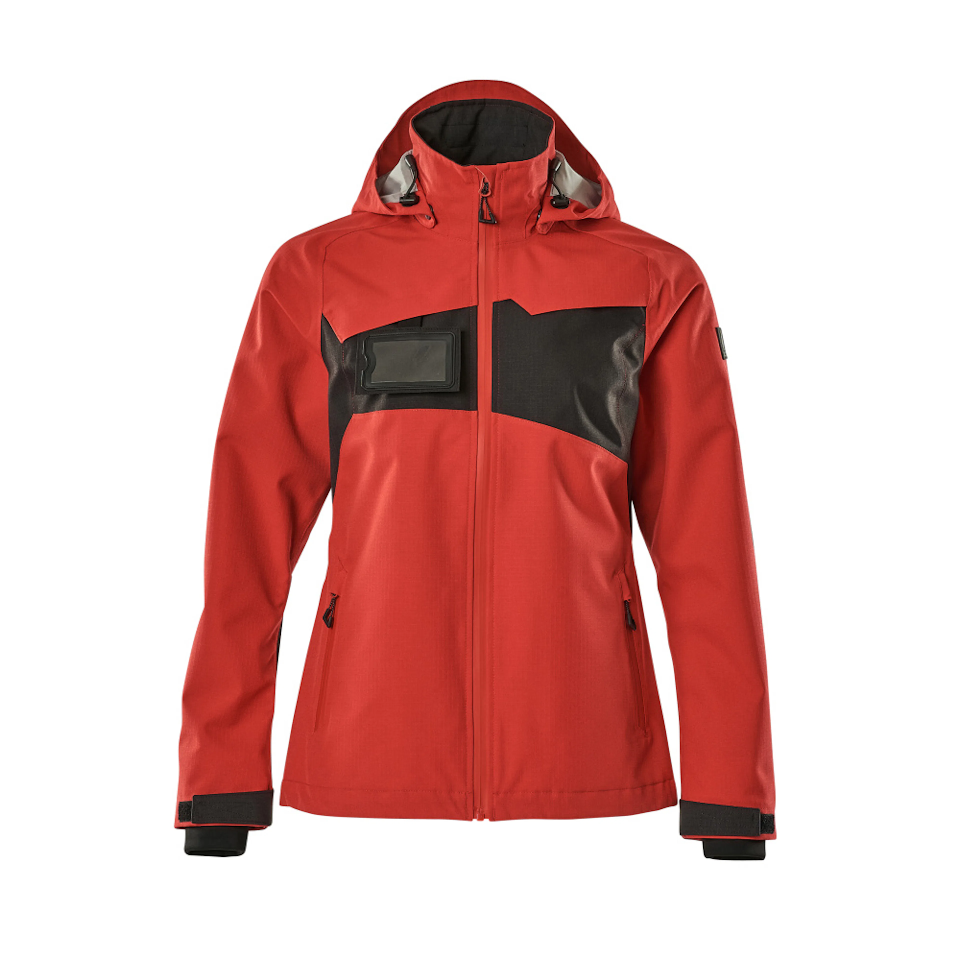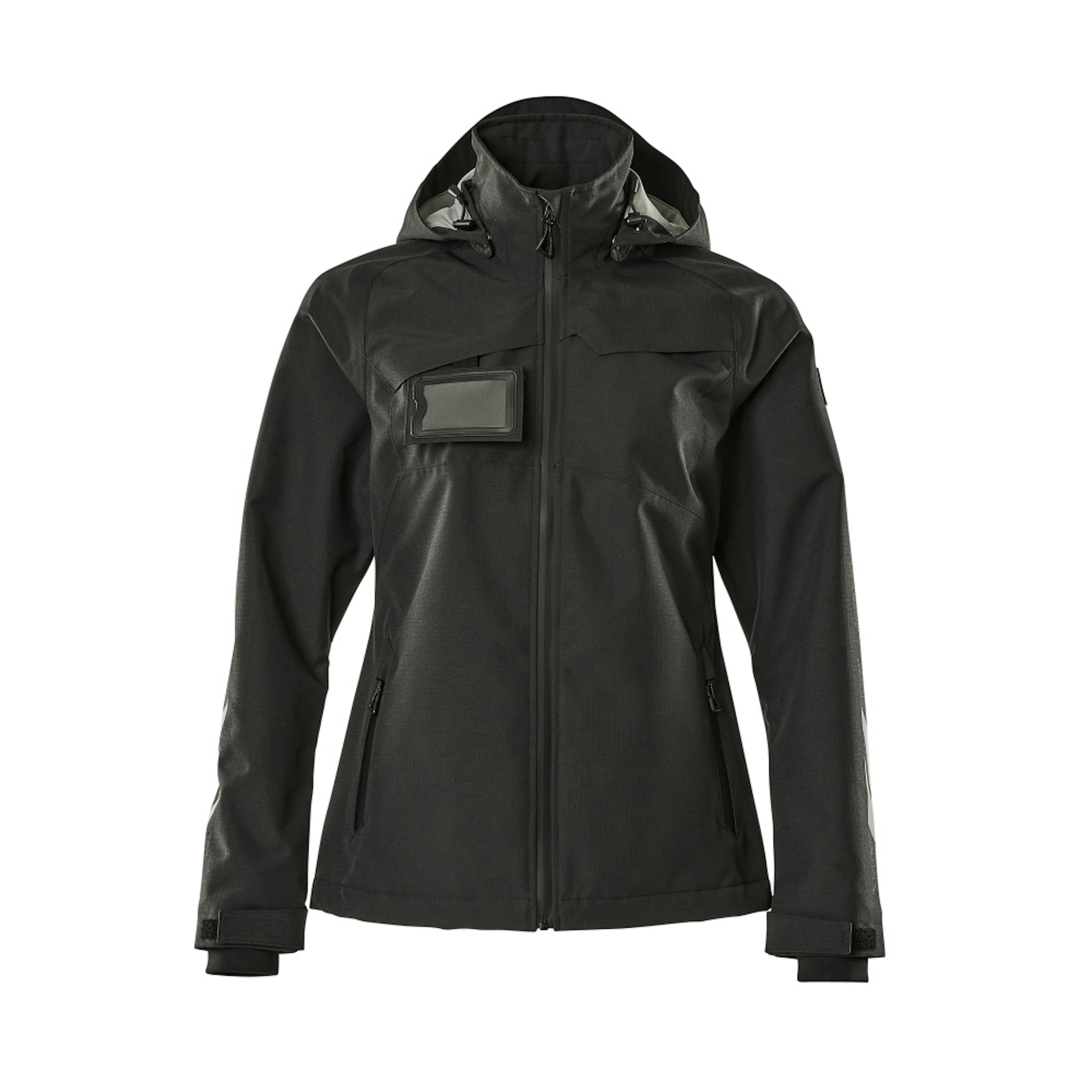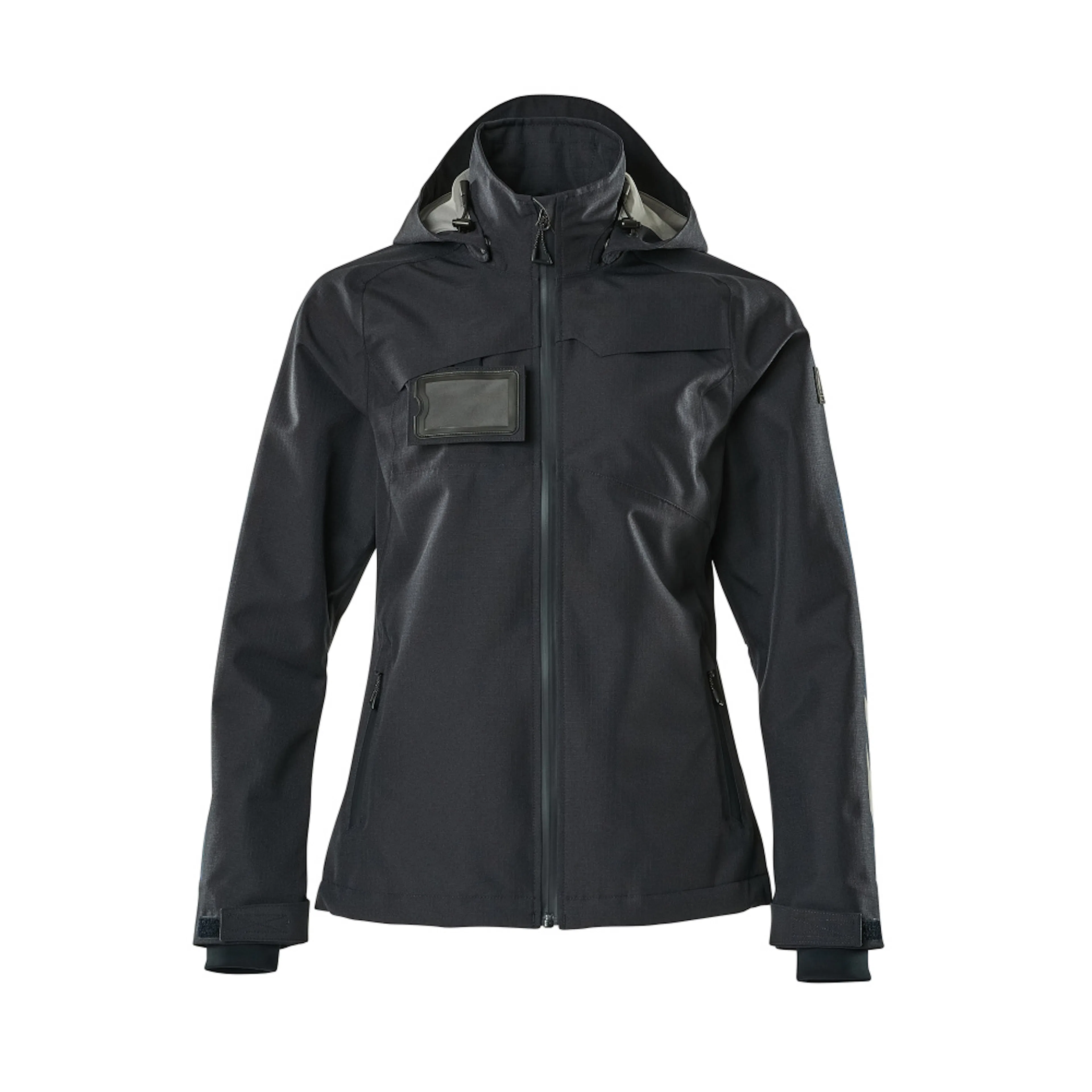 Lady passform. Andas, vind- och vattentät. Sömmarna är tejpade. Huvan är avtagbar, fodret har justerbart resårsnöre. Stängning med blixtlås och invändigt vindfång. Innerficka med blixtlås. ID-kortshållaren är avtagbar. Framfickor med blixtlås. Resårkanten i nederkanten är reglerbar. Ärmar med CORDURA®-förstärkning. Ribbstickning vid handleden (dold i vindskyddet). Med tryck och reflexer.