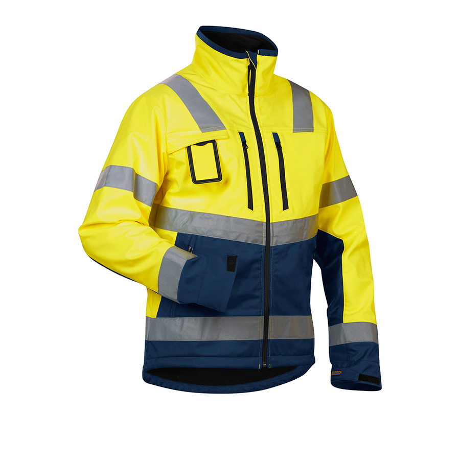 Modern softshelljacka från Blåkläder med ett vattentätt tyg som andas. Jackan har en hög krage med ett mjukt fleecefoder.