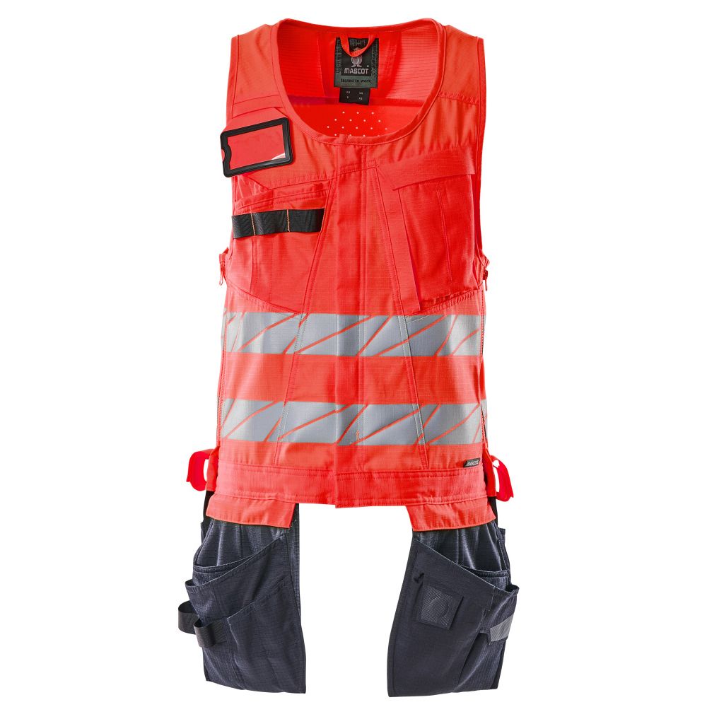 Fluorescerande och med reflexer. Har en vattenavvisande yta. Ultimate stretchtyg med låg vikt och bra slitstyrka. Stängning med blixtlås. ID-kortshållaren är avtagbar. Bröstficka. Telefonbröstficka med lock. Två avtagbara hängfickor framtill och två hängfickor baktill. Hängfickor bak kan knäppas. Stängning med tryckknapp på den innersta hängfickan. Hängficka med fodrad telefonficka och magnetstängning. Hängfickor med Kevlar® och CORDURA®-förstärkningar. Verktygsstropp på båda sidor av linningen. Blixtlås i båda sidorna. Ventilation i ryggen. Ventilation i sidorna med blixtlås.