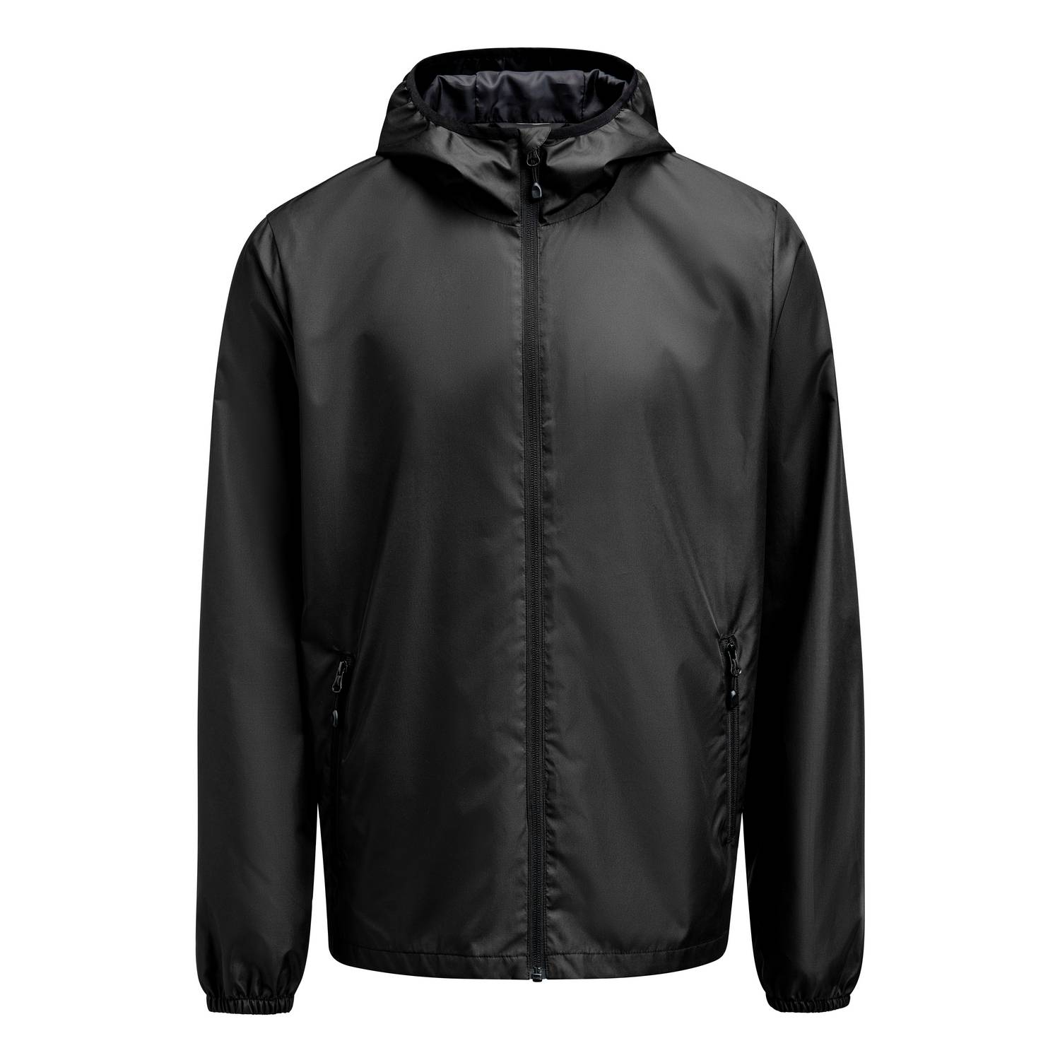 Skön Windbreaker i matt finish med ton-i-ton-dragkedja, fast huva och elastiska ärmslut och midja. Meshfoder. Vattenavvisande C0 Bionic Finish Eco.