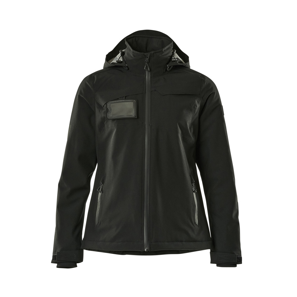 Lady passform. Metervaran är lätt. Andas, vind- och vattentät. Sömmarna är tejpade. Med CLIMASCOT® Lightweight Insulation. Huvan är avtagbar, fodret har justerbart resårsnöre. Stängning med blixtlås och invändigt vindfång. Innerficka med blixtlås. ID-kortshållaren är avtagbar. Framfickor med blixtlås. Resårkanten i nederkanten är reglerbar. Blixtlås nederst på ryggen, invändigt, för användning vid tryck/broderi. Ribbstickning vid handleden (dold i vindskyddet). Med tryck och reflexer.
