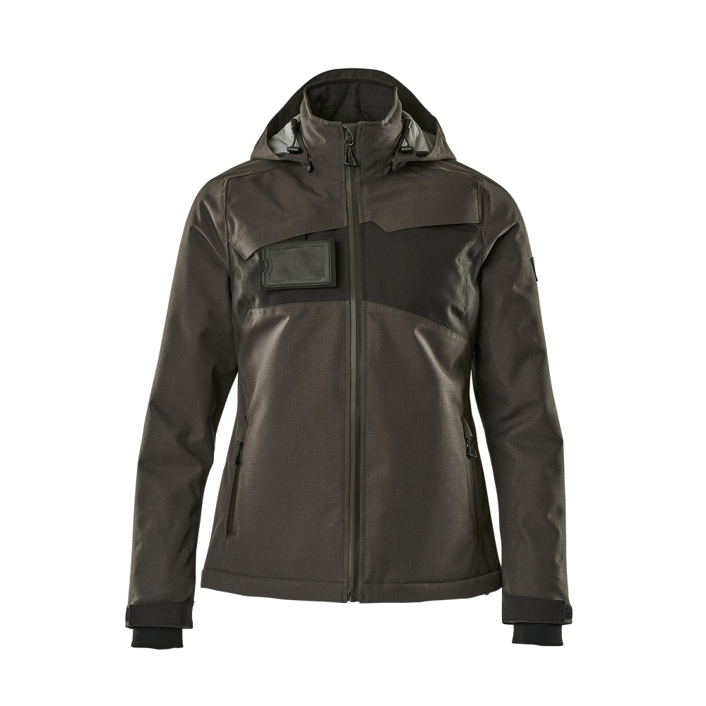 Lady passform. Andas, vind- och vattentät. Sömmarna är tejpade. Med CLIMASCOT® Lightweight Insulation. Huvan är avtagbar, fodret har justerbart resårsnöre. Stängning med blixtlås och invändigt vindfång. Innerficka med blixtlås. ID-kortshållaren är avtagbar. Framfickor med blixtlås. Resårkanten i nederkanten är reglerbar. Blixtlås nederst på ryggen, invändigt, för användning vid tryck/broderi. Ärmar med CORDURA®-förstärkning. Ribbstickning vid handleden (dold i vindskyddet). Med tryck och reflexer.
