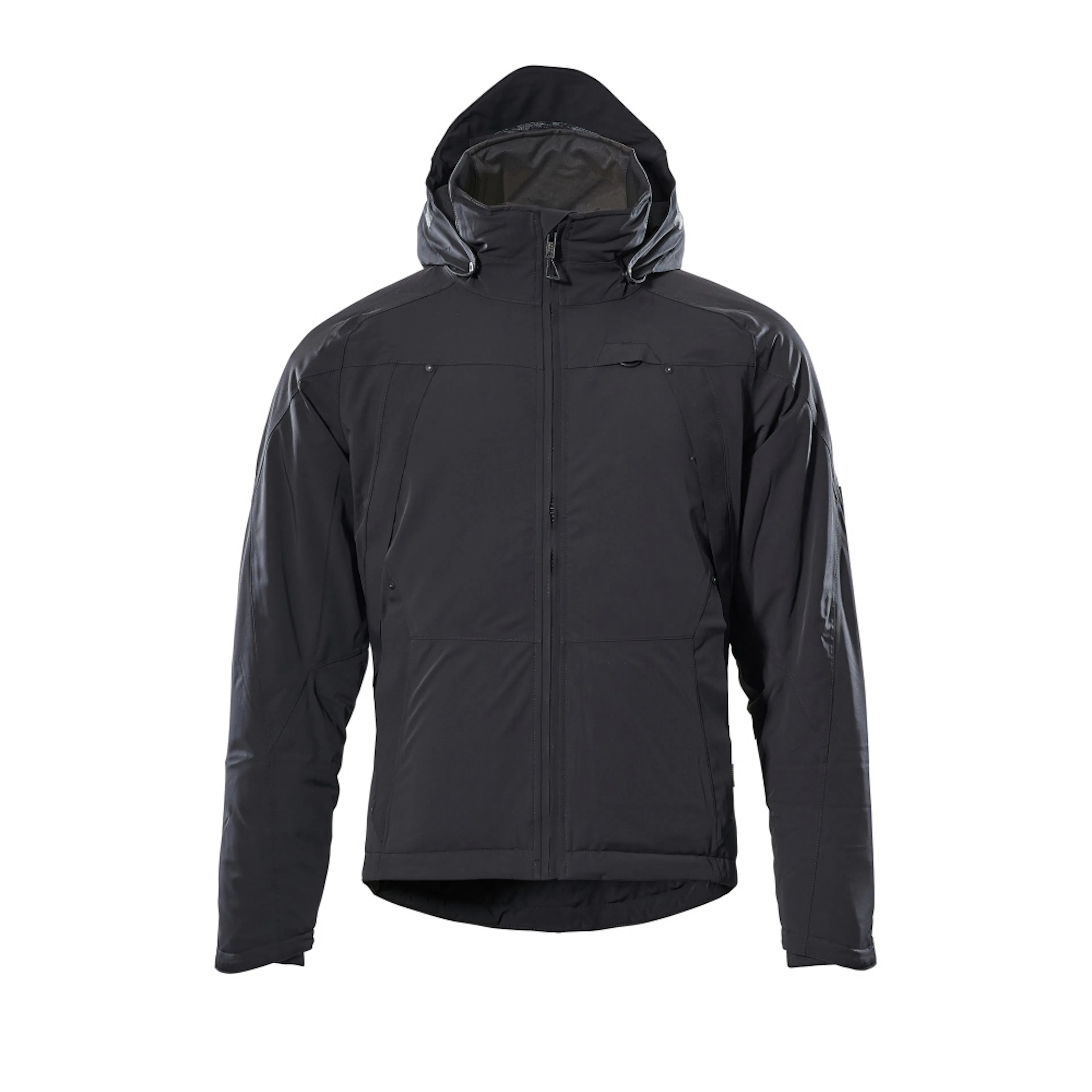 Ultimate stretchtyg med låg vikt och hög slitstyrka. Andas, vind- och vattentät. Sömmarna är tejpade. Quiltfoder med CLIMASCOT® Lightweight Insulation. Stängning med vattentätt blixtlås och invändigt vindfång. Huvan är avtagbar, fodret har justerbart resårsnöre. Hög krage med justerbart resårband. Innerficka med blixtlås. Bröstfickor med blixtlås. D-ring. Framfickor med blixtlås. Ergonomiskt utformade ärmar ger god rörelsefrihet. Ribbstickning vid handleden (dold i vindskyddet). Hål för tummarna vid handleden. Resårkanten i nederkanten är reglerbar. Ryggen är förlängd. Blixtlås nederst på ryggen, invändigt, för användning vid tryck/broderi. Reflexeffekter.