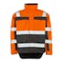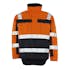 Fluorescerande och med lod- och vågräta reflexer. Tvåfärgat. Andas, vind- och vattentät. Sömmarna är tejpade. Pälsfoder på fram- och bakstycke. Quiltfoder i ärmarna. Ryggen är förlängd. Stängning med blixtlås, vindskydd och dolda tryckknappar. Blixtlåsficka under vindskydd. Bröstfickor med lock och kardborreband. Telefonbröstficka med blixtlås. D-ring. Pennficka. Fickor på framstycket. Innerficka med kardborreband. Ribbstickning (dold i vindskyddet) och tryckknappar vid handleden. Tryckknappar i nederkanten. Blixtlås nederst på ryggen, invändigt, för användning vid tryck/broderi. Tryckknappar till huva.