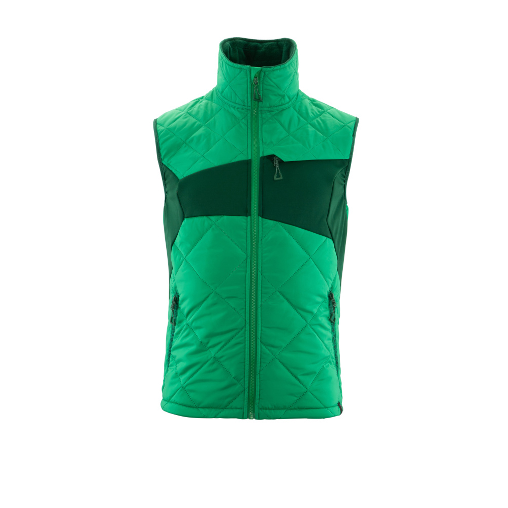 Unik CLIMASCOT®-isolering säkrar effektivt värmen, är lätt, mjuk och tar nästan ingen plats när den trycks ihop. Vattenavvisande. Stretchtyg i sidorna ger extra rörelsefrihet. Elastiska band i ärmhål sluter till bra och ser till att värmen stannar vid kroppen. Extra synlig för omgivningarna med hjälp av reflexeffekter.