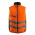 Fluorescerande med sneda tvärgående reflexer. Tvåfärgat. Andas, vindtät och vattenavvisande. Vadderat. Stängning med blixtlås och invändigt vindfång. Hög krage. Innerficka med blixtlås som är särskilt utformad för telefoner, med hål till kabel och headset och öglor för att hålla kabeln på plats. Bröstfickor med blixtlås. D-ring. Framfickor med blixtlås.