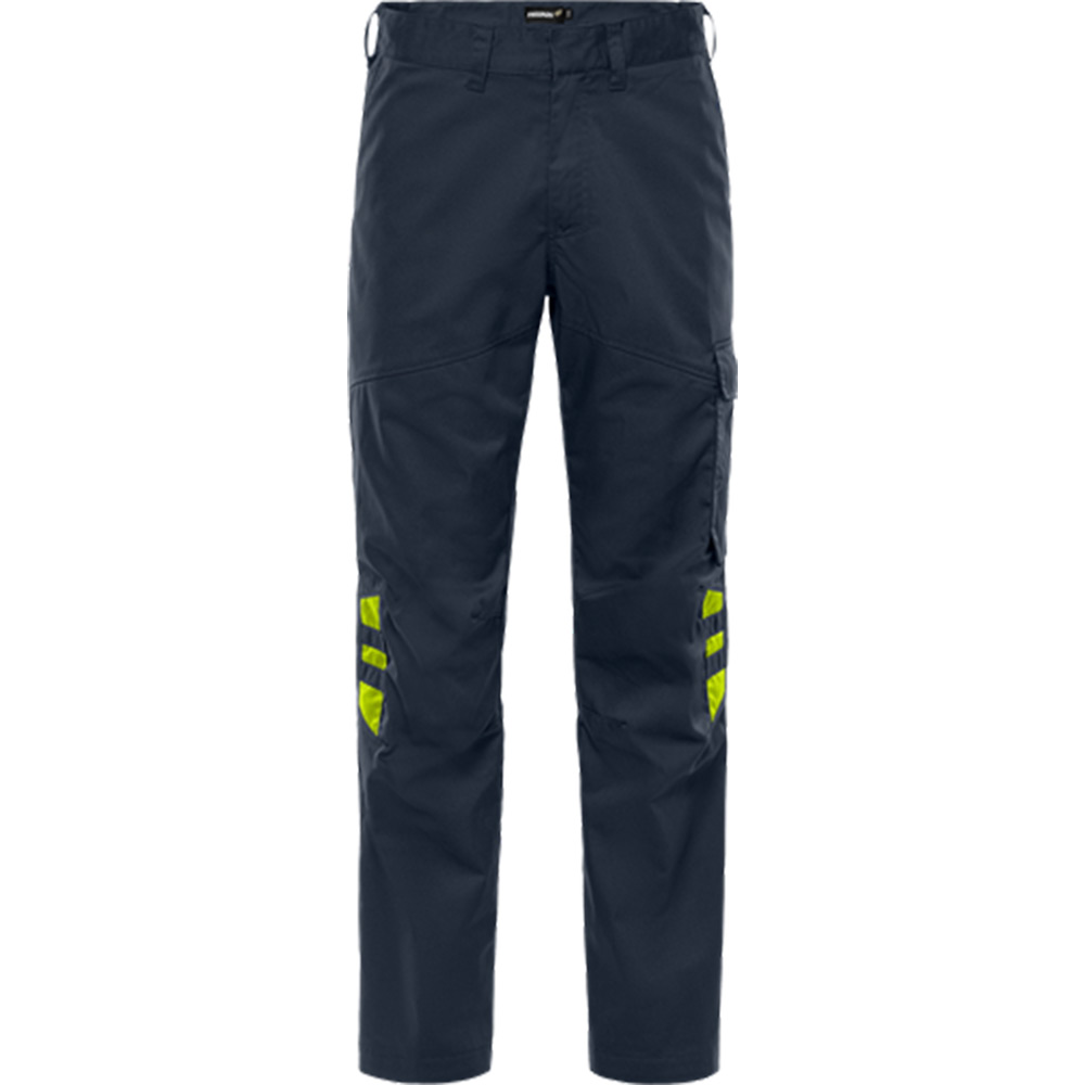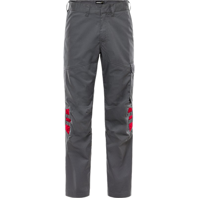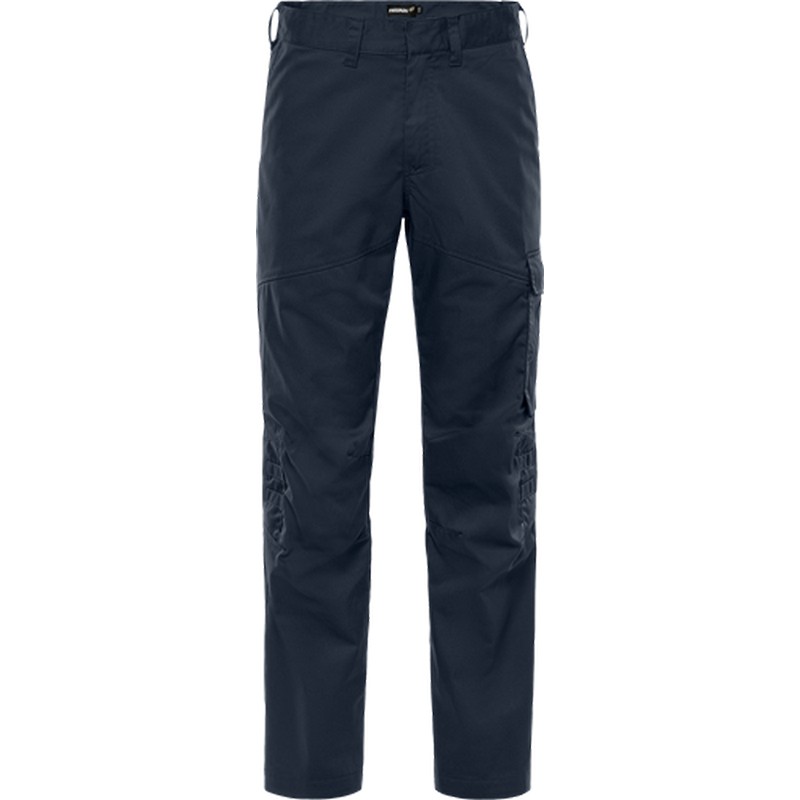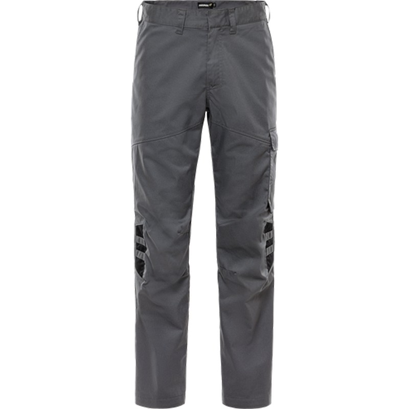 Delvis återvunnet material / Mekanisk stretch / Ribbstickade stretchpartier i midjan / Dold knapp fram / 2 framfickor / 2 bakfickor / Tumstocksficka och verktygsficka / Benficka med hälla för id-kortshållare under lock med dold tryckknapp / Förböjda knän / Benlängden kan förlängas 5 cm / Godkänd enligt EN 13758-2 UPF 40+ UV-skydd / Testad för industritvätt enligt ISO 15797 / OEKO-TEX®-certifierad.