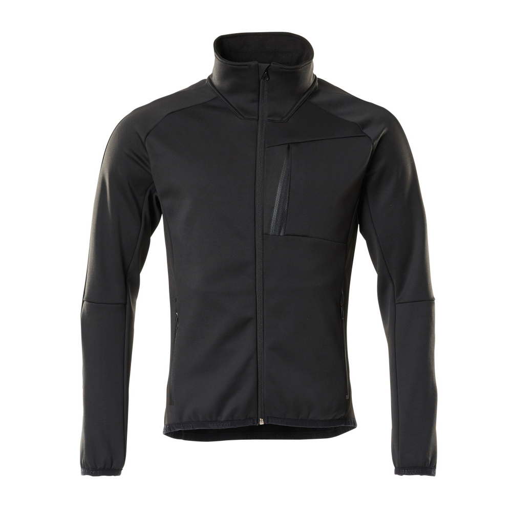 Fleecematerialets glatta yta gör att smuts och damm inte fastnar. Modern, mer kroppsnära passform med riktigt bra rörelsefrihet. Knäppning med blixtlås och invändig vindflik så att vinden stängs ute. Flexibel och åtsittande hög krage. Elastiska band i ärmar och nederkant. Extra synlig för omgivningarna med hjälp av reflexeffekter.