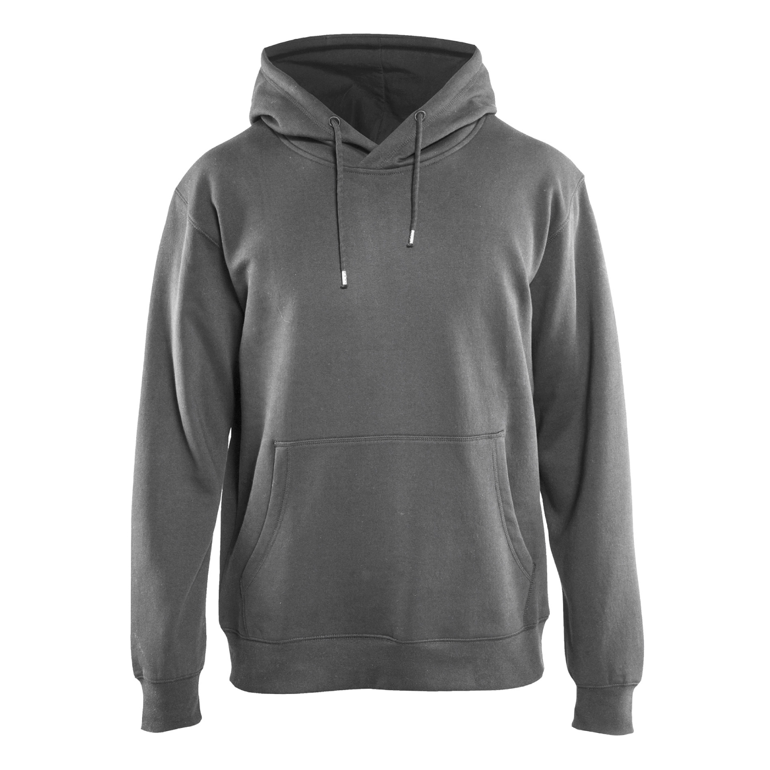 Enfärgad huvtröja från Blåkläder med justerbar luva och känguruficka samt invändig telefonficka med blixtlås.