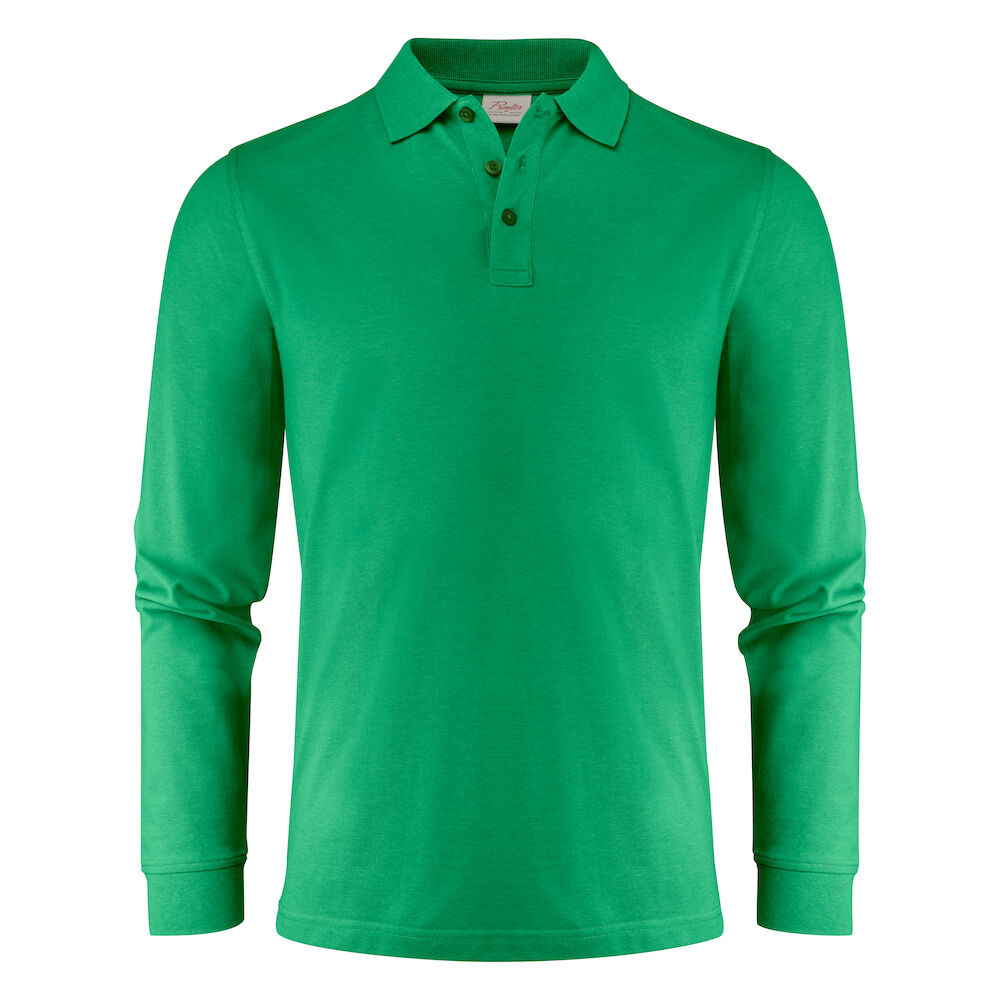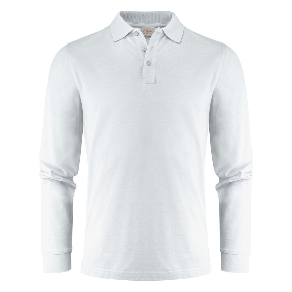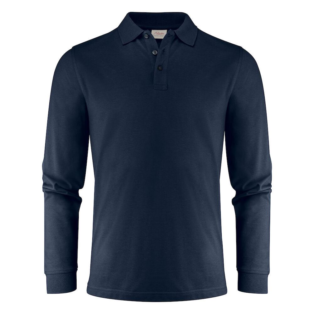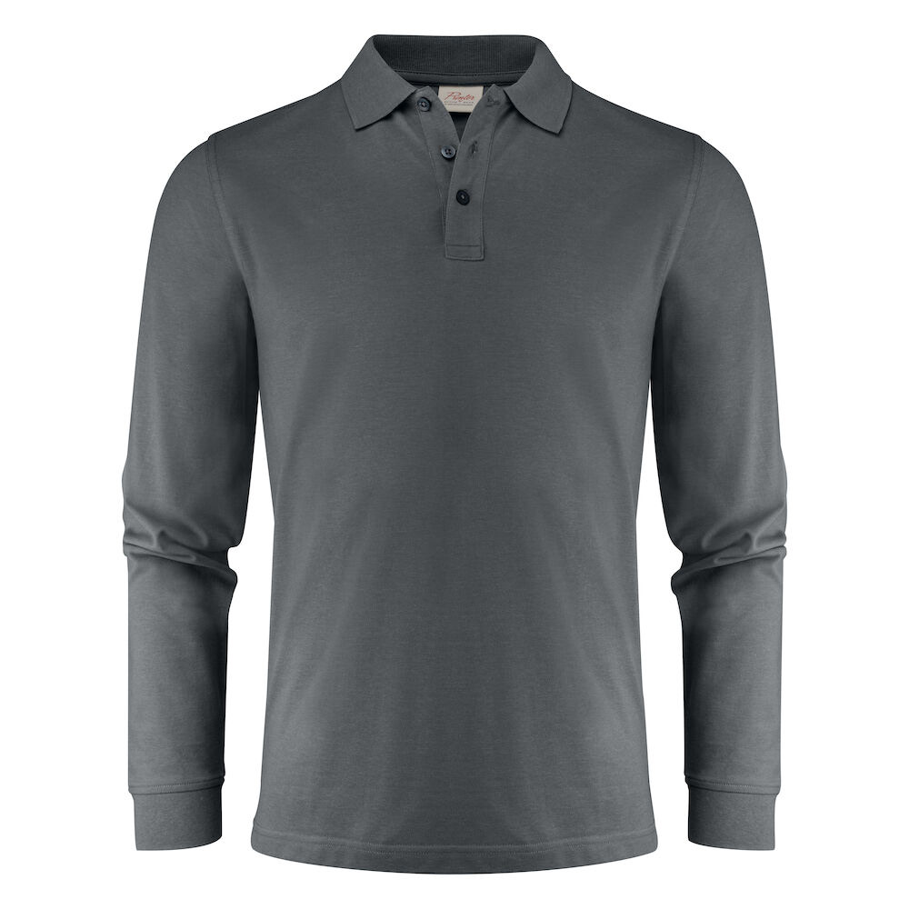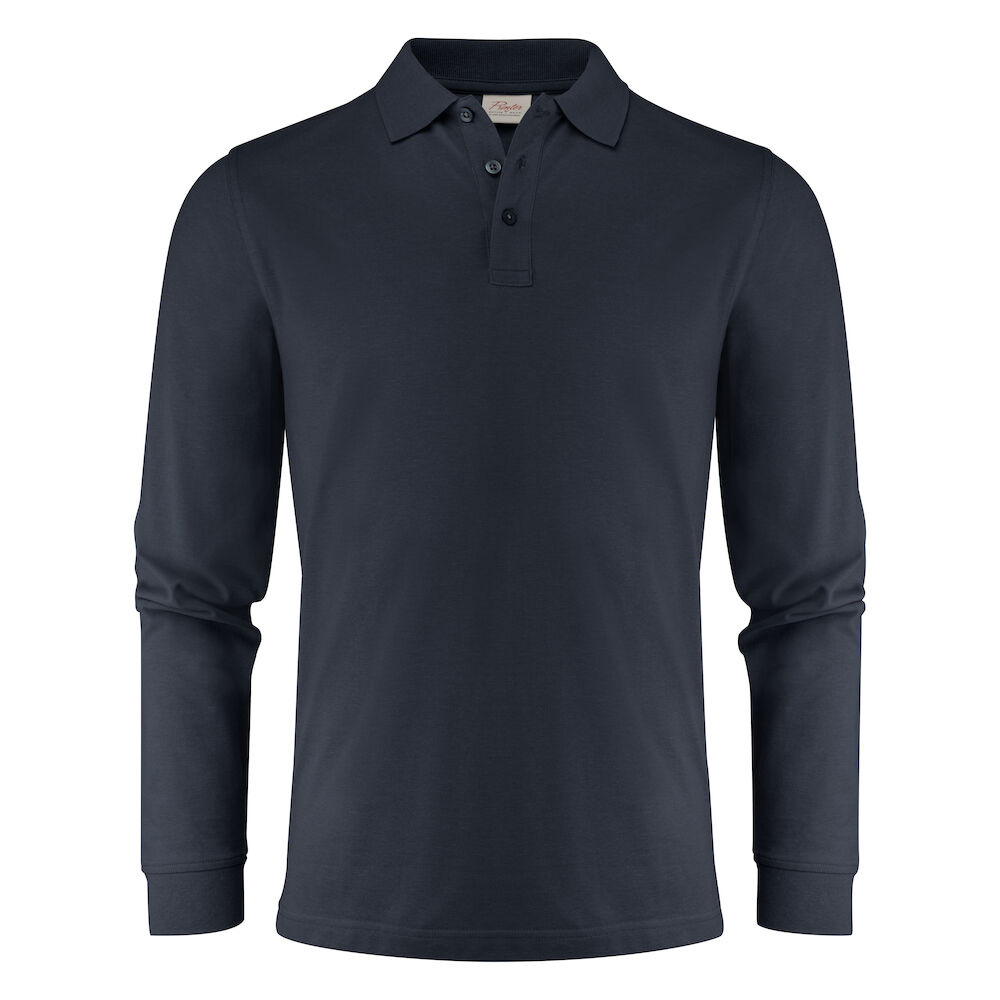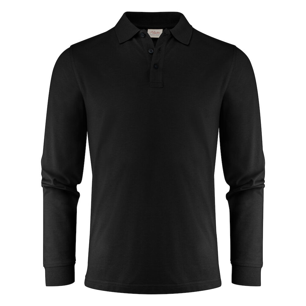 Piké med långa ärmar, slätstickad krage och sidoslitsar. 3-knapps stängning. I vänster sidosöm finns en tvättchipficka. Oeko-Tex 100 certifierad. Förpackad i en biobaserad, komposterbar påse.