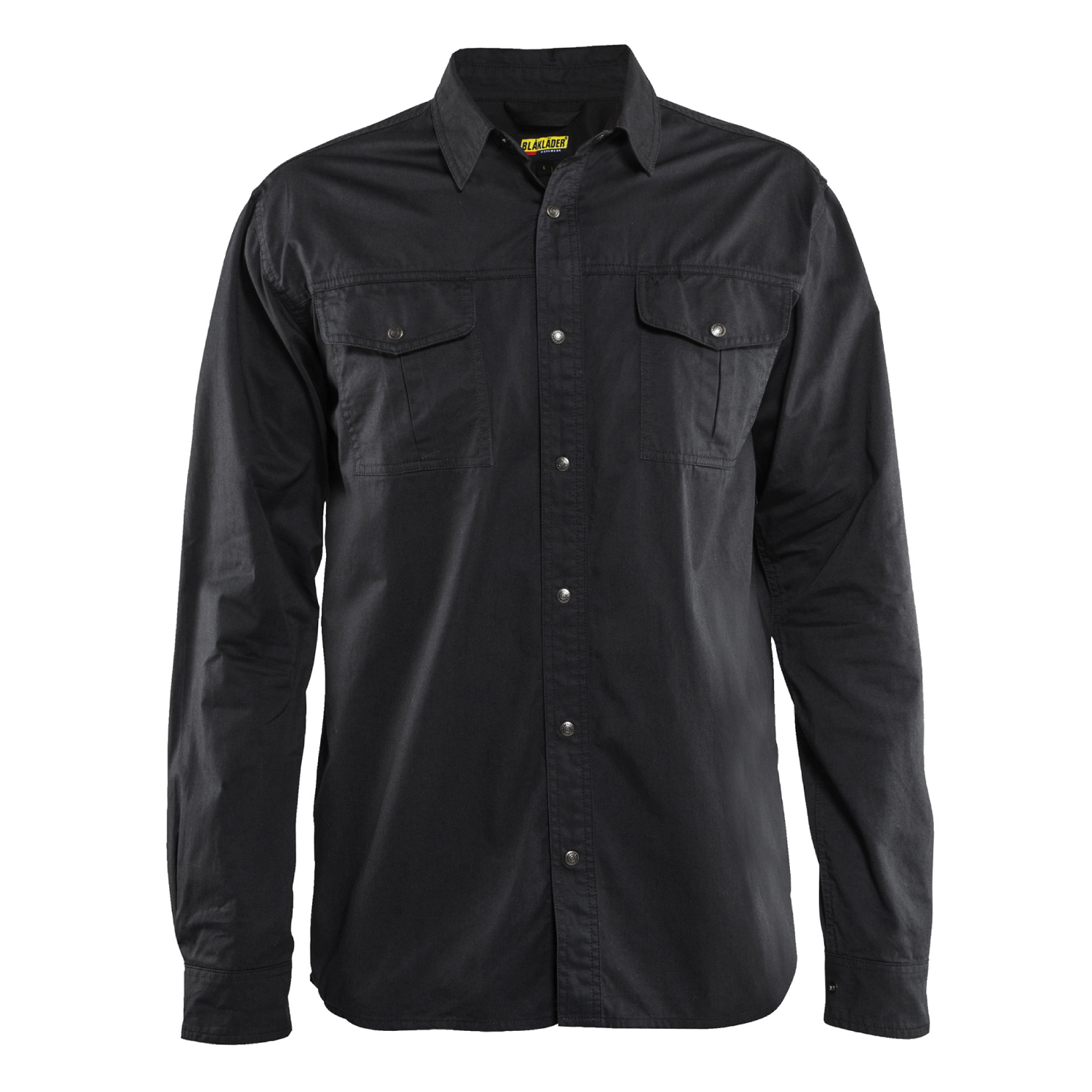 Långärmad twillskjorta från Blåkläder i loose fit-modell. Skjortan har tryckknappar i metall och bröstficka med lock och pennficka. Manschetter i ärmavslut.