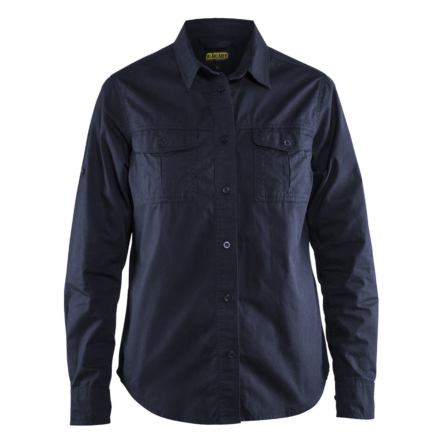 Långärmad twillskjorta i dammodell från Blåkläder. Skjortan har manschetter i ärmavslut och slejf med knapp för att hålla kvar uppvik.