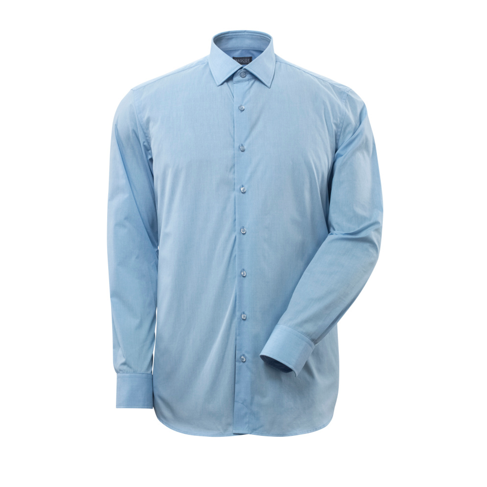 Poplin är ett tätt vävt och slätt skjorttyg. Modern, mer kroppsnära passform med riktigt bra rörelsefrihet. Slå med knappar. Krage med kragförstärkning. Justerbar vid handleden.