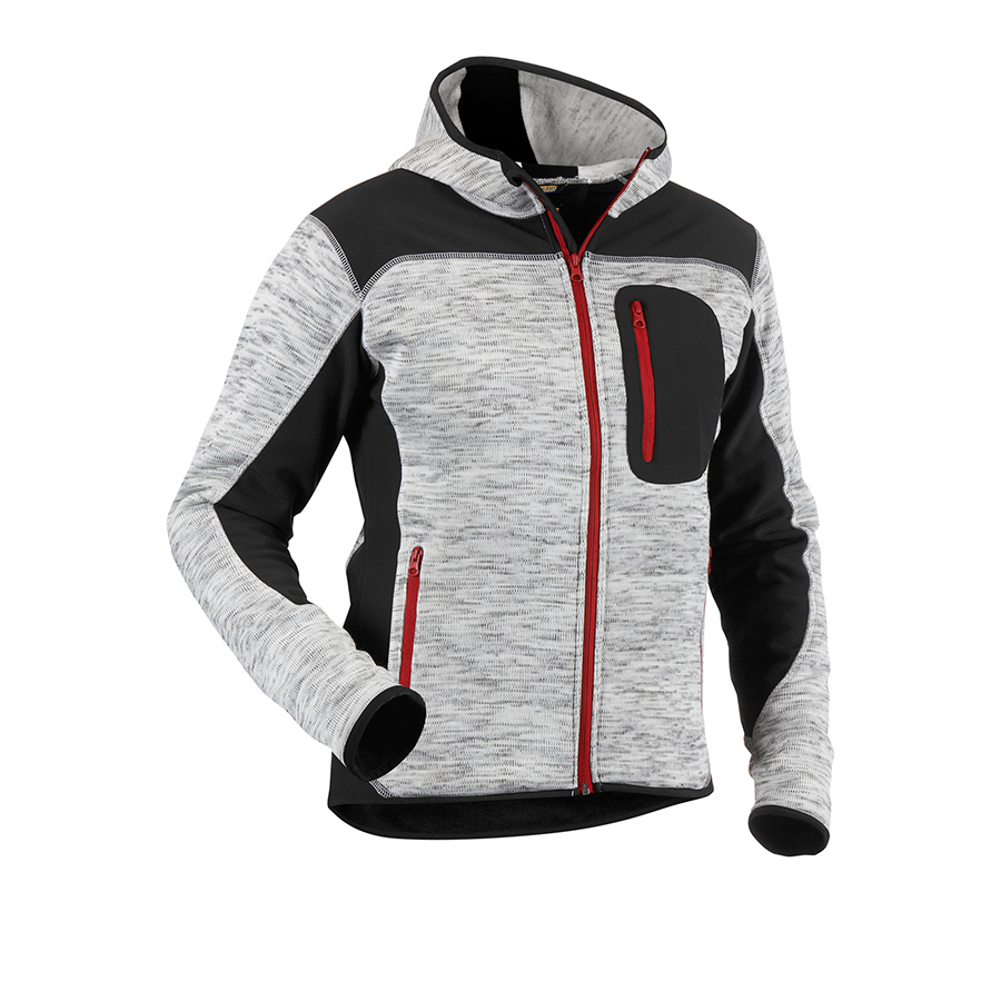 Stickad jacka med luva i snygg design och bekväm kvalitet. Jackan har dragkedjor i kontrastfärg och är förstärkt med softshell-material på axlar och ryggslut för ökad slitstyrka. Fritid som arbete, detta är jackan att trivas i. Finns även som damjacka, artikel 4931.
