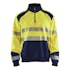 Sweatshirttröja från Blåkläder med hög krage, kort blixtlås fram och känguruficka. Tröjan har två färger, en i varsel och en mörkare färg på smutsutsatta partier. Den har praktiska funktioner såsom hål för hörlur i fickan samt mobilficka med blixtlås.