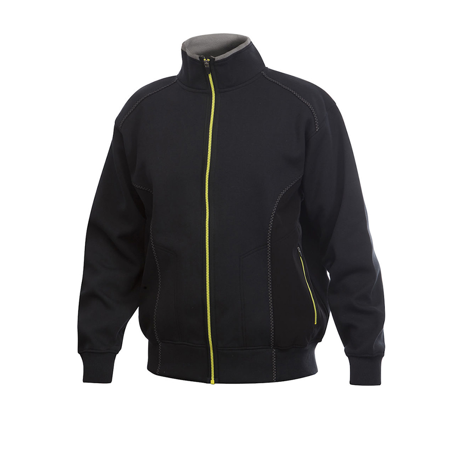 Sweatshirt med blixtlås. Blixtlåsförsedda sidfickor med softshellförstärkningar. Mudd i ärmslut och midja.