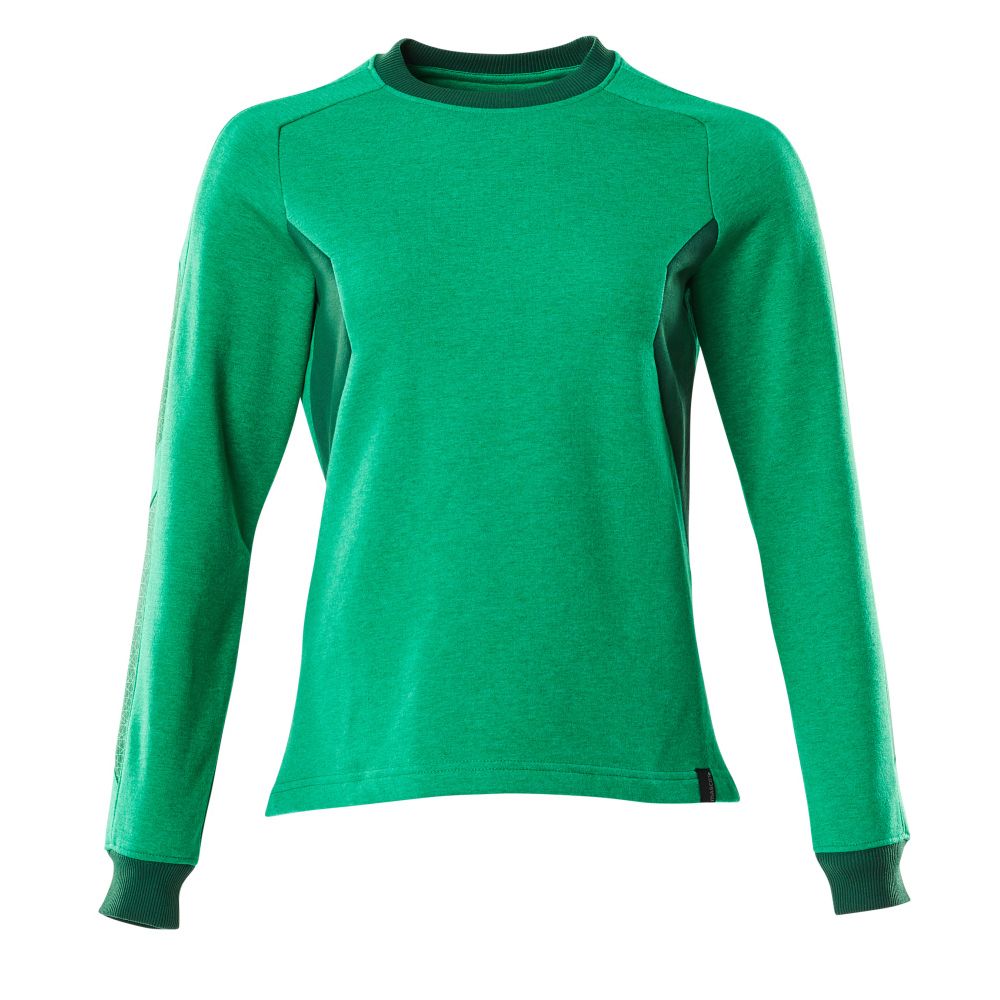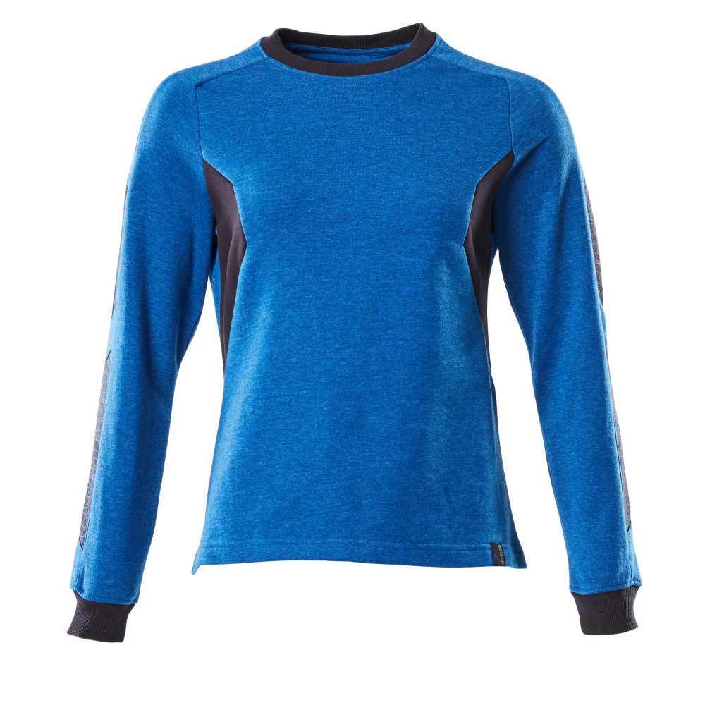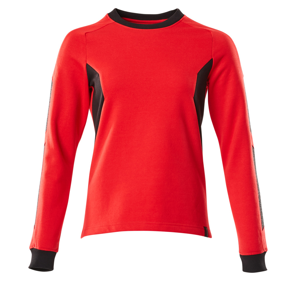 Lady passform. Kraftig kvalitet. Borstad insida. Ribbstickning i halsen och vid handlederna. Nackband. Tryck på delar av plagget.