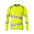 Fluorescerande med sneda tvärgående reflexer. Tvåfärgat. Modern passform. Behaglig bomullsinsida och slitstark polyester med stretch på utsidan. Kvadratiskt jacquardmönster. Reflexen är elastisk. Rund hals. Ribbstickning i halsen. Kragbesättning. Nackband. Resår vid handleden och i nederkanten.