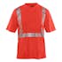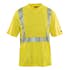 T-shirt i varsel från Blåkläder som har 50 mm breda, skurna, transferreflexer med stretchegenskaper för optimal rörelseförmåga samt UV-skydd 40+. Tillverkad i fukttransporterande material.