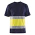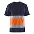 T-shirt från Blåkläder med påsydda reflexer med öppningar i sidan för bättre komfort och ökad rörelsefrihet. Rundhalsad och med förstärkt nacksöm. Tröjans mörka parti består av 100 % bomull och varselpartiet är gjort i 100 % polyester.
