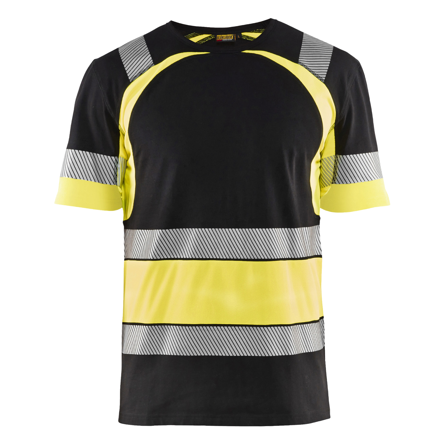 Mjuk och bekväm varsel-t-shirt från Blåkläder i modern design. Tröjan har varselpartier i tyg med fukttransport och anti-odör. Rundhalsad med förstärkt nacksöm. Segmenterad reflex för bra ventilation och stretchegenskaper som ger optimal rörelseförmåga. Tröjans mörka parti består av 100% bomull och varselpartiet i 100% polyester.